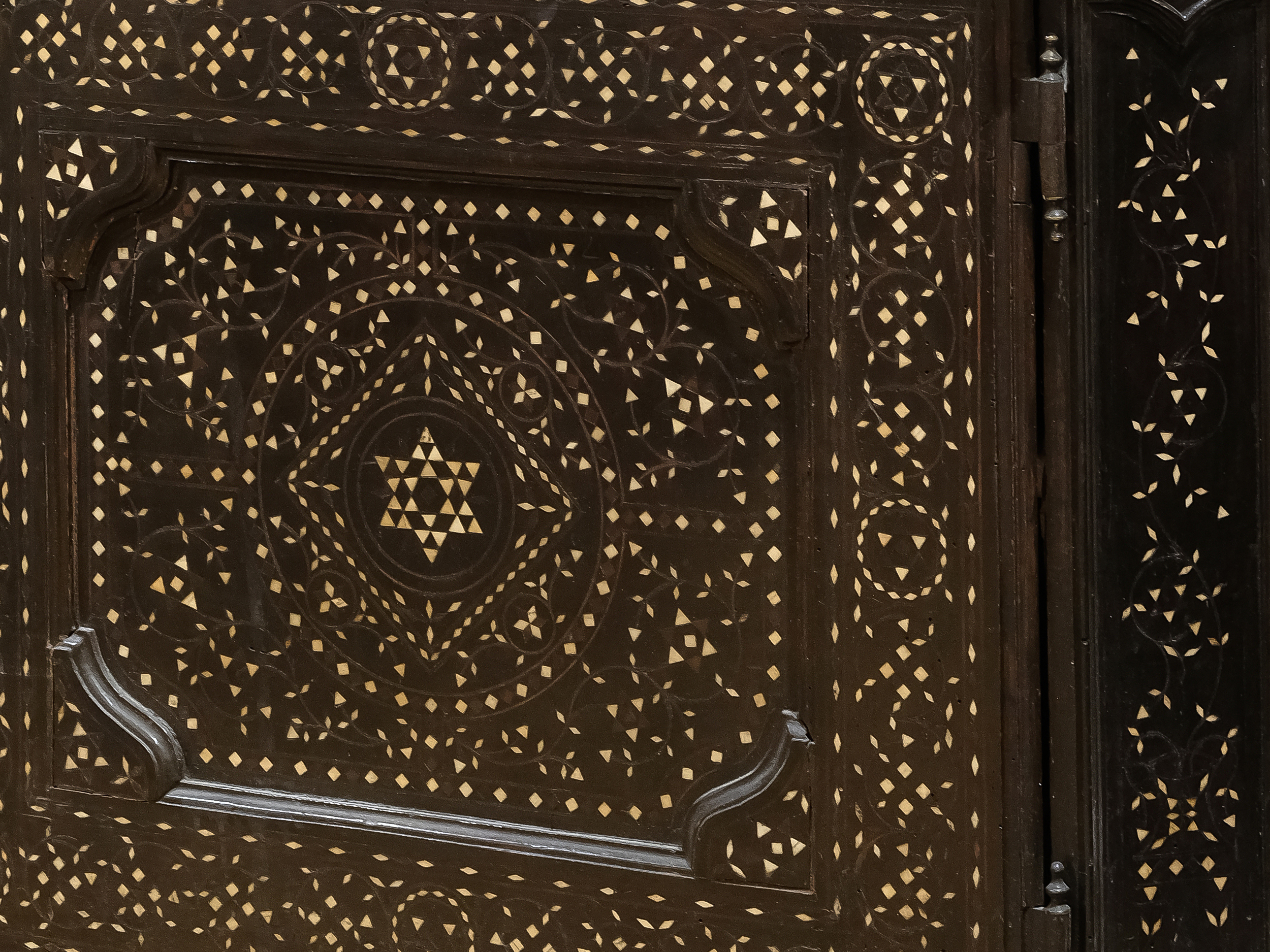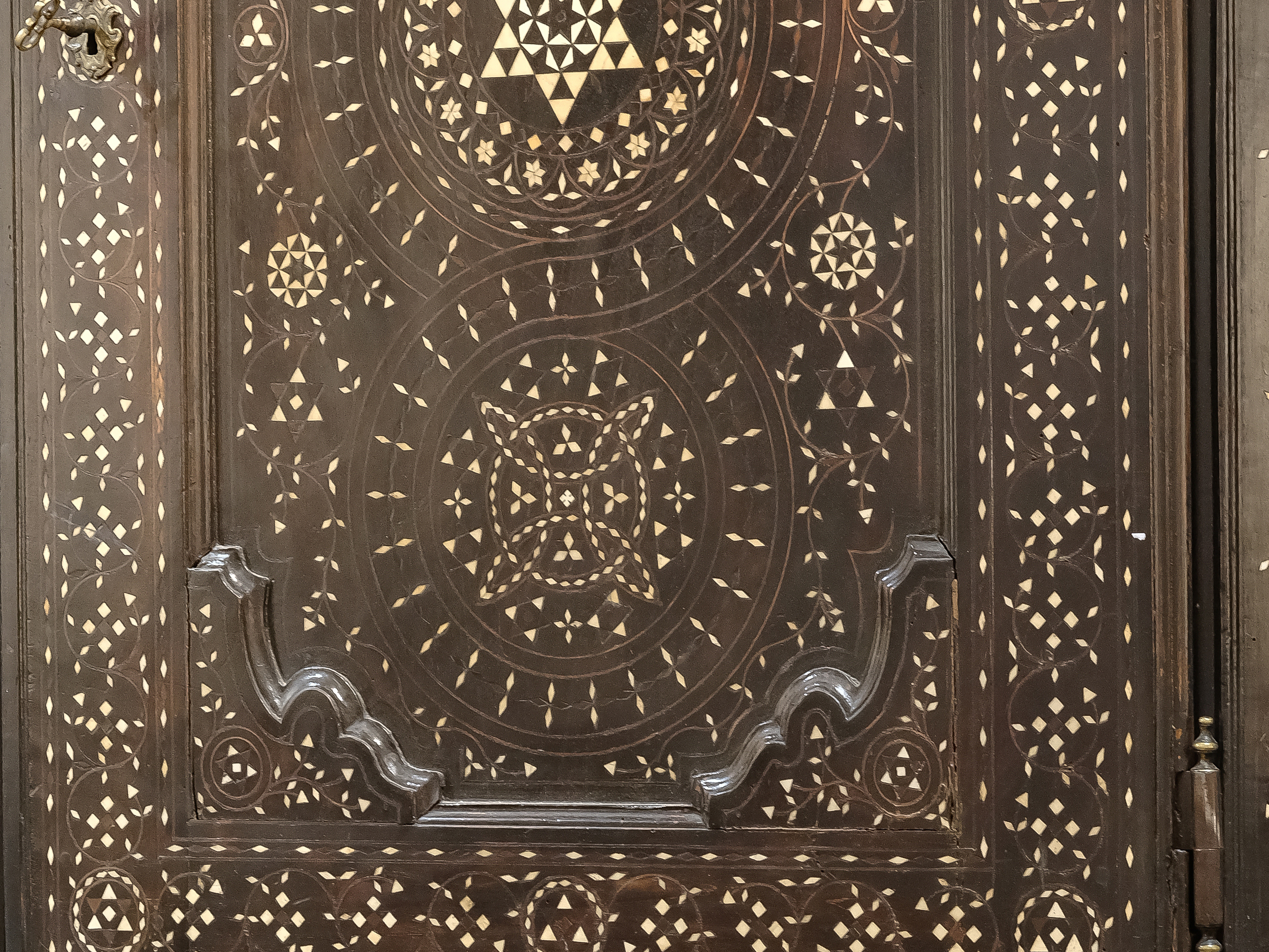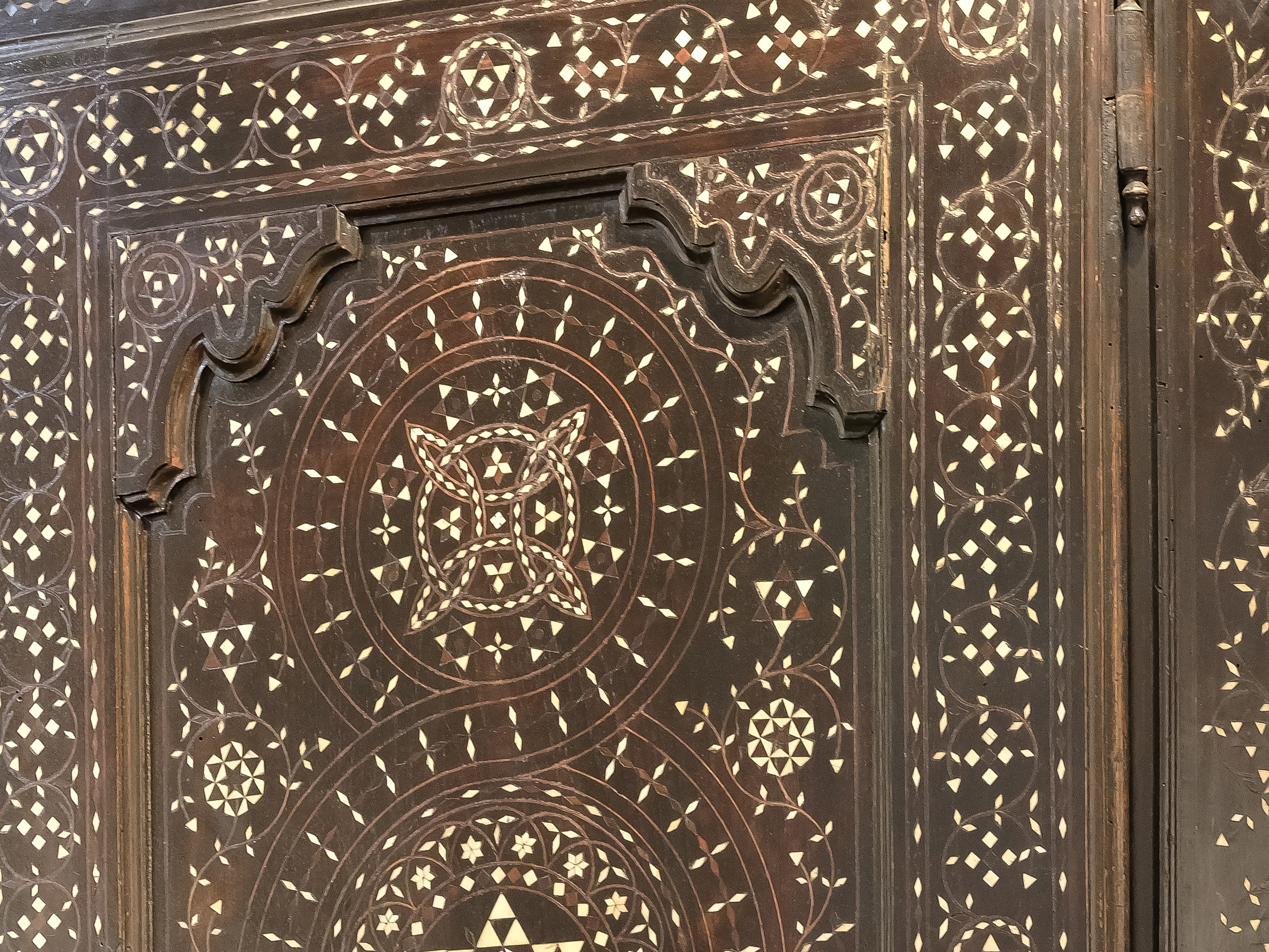 Nussholz massiv, geometrisch & linear intarsiert