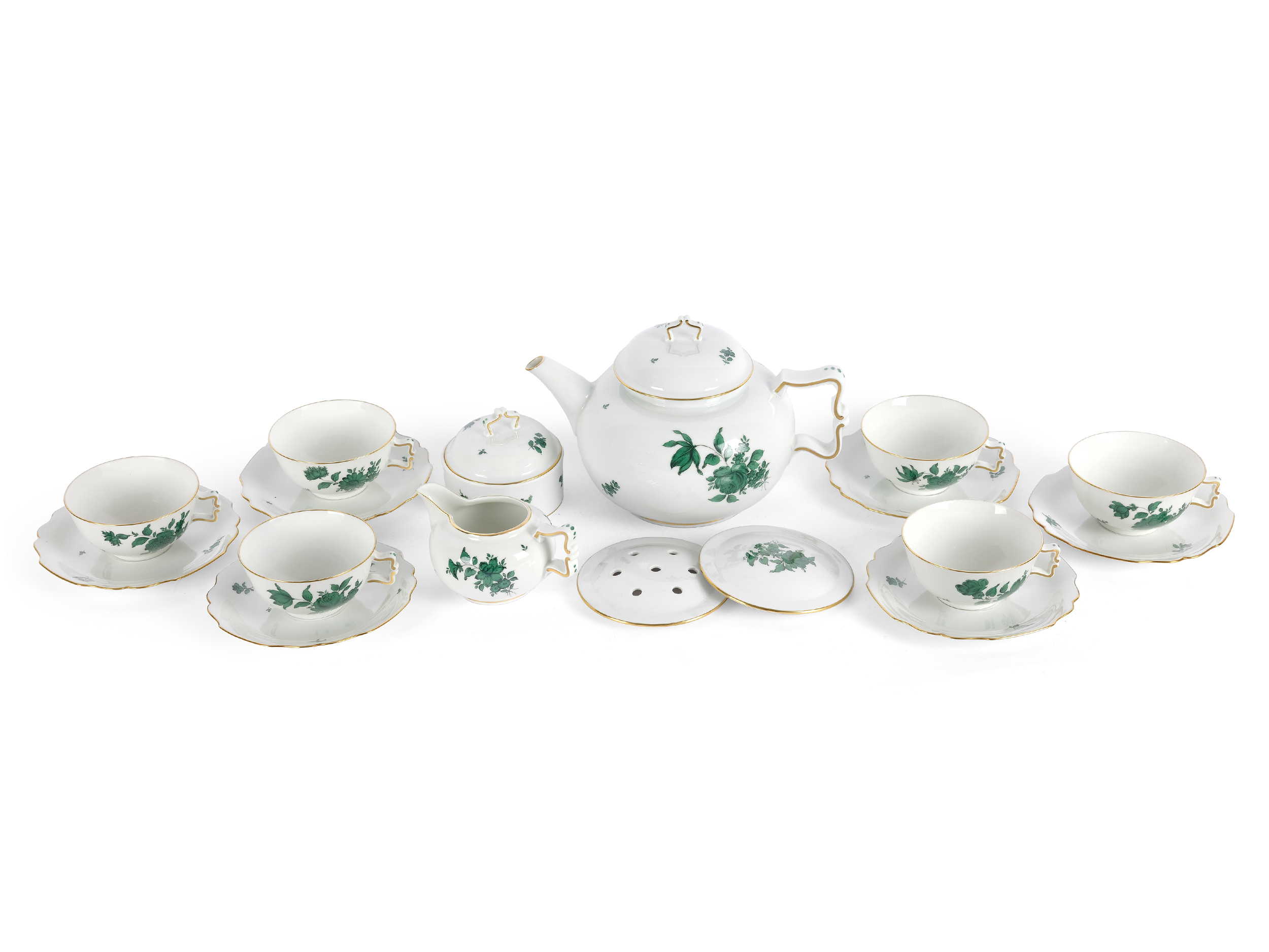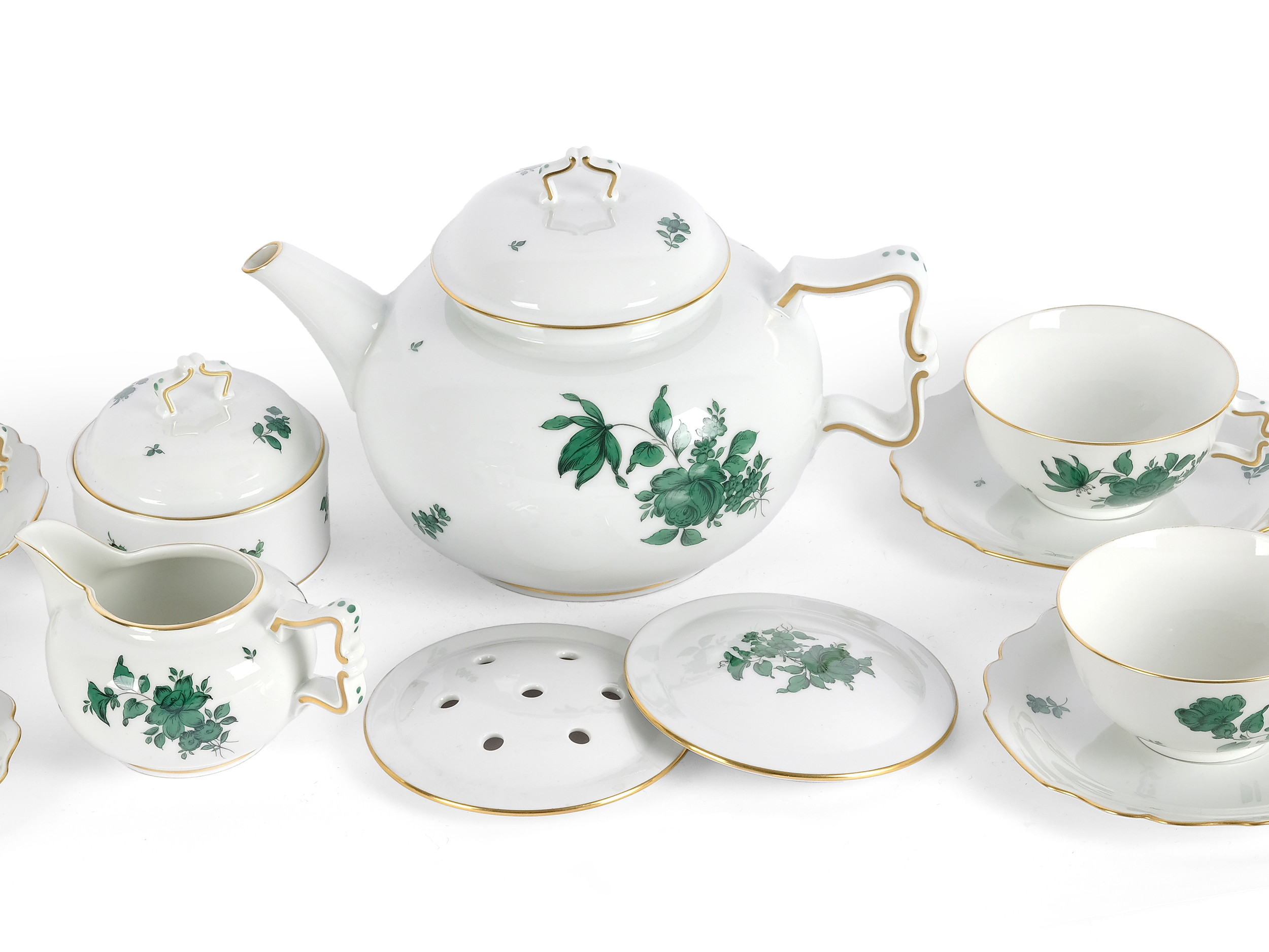 Porzellan grün staffiert & vergoldet
