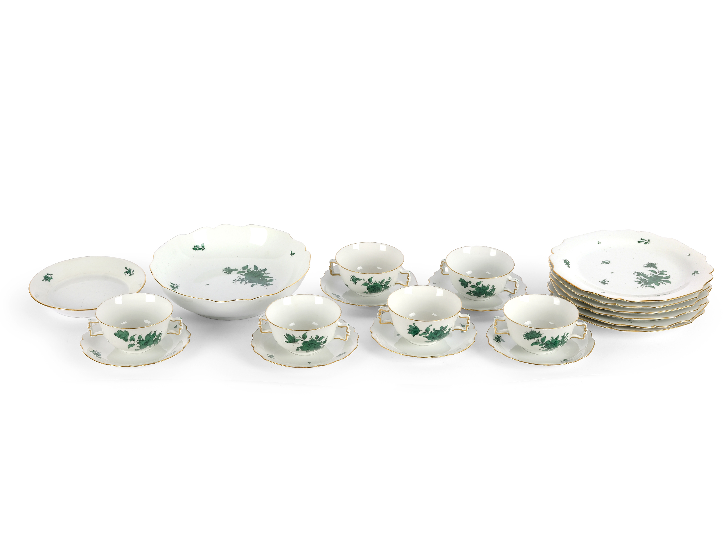 Porzellan grün staffiert & vergoldet