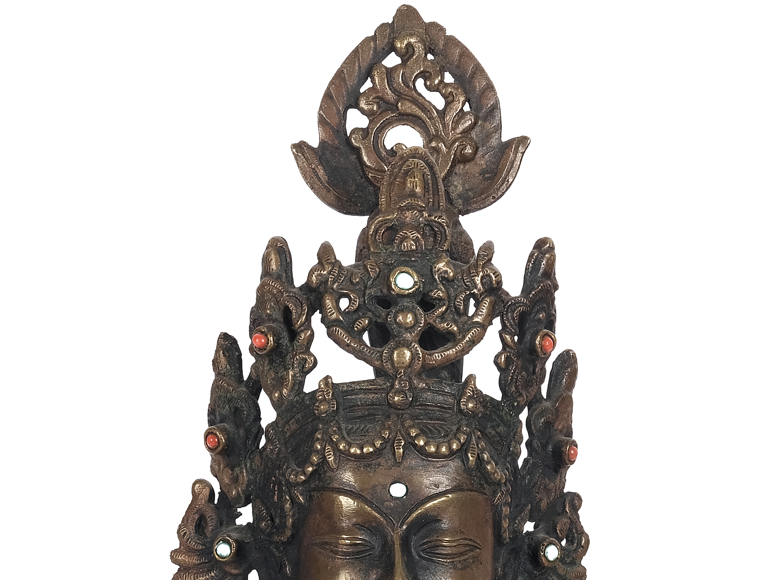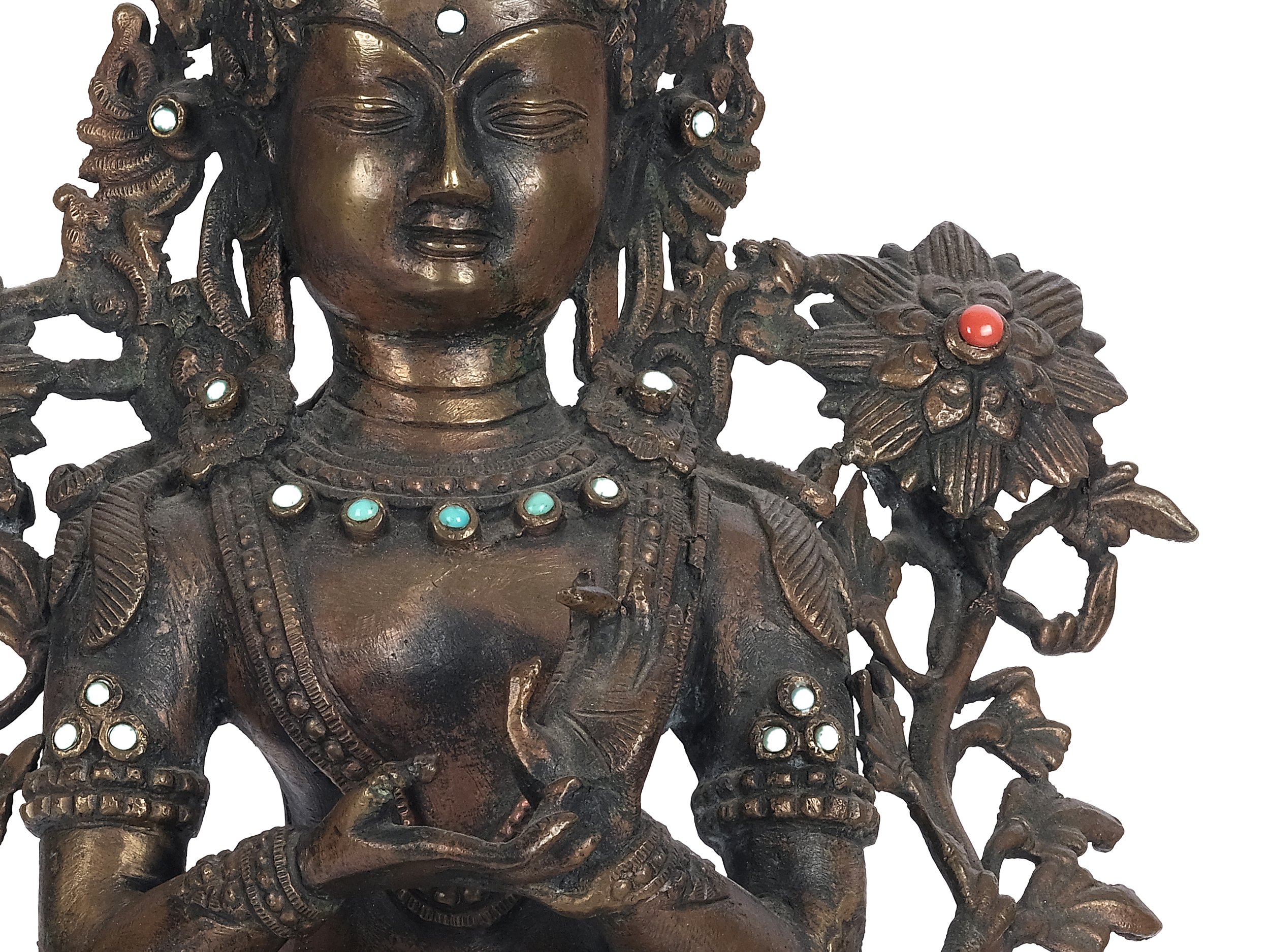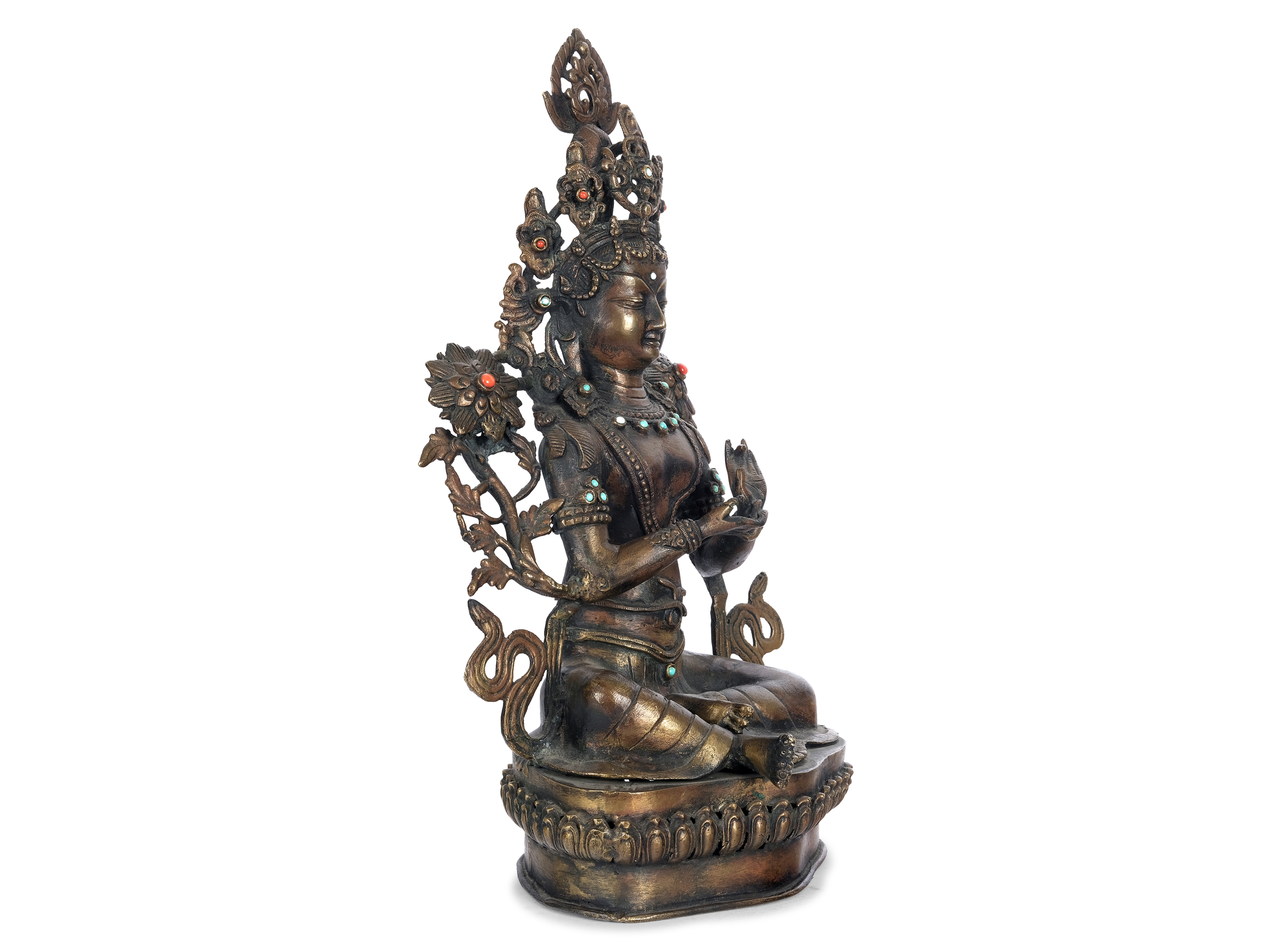 Bronze gegossen, mit Türkisen & Korallen verziert