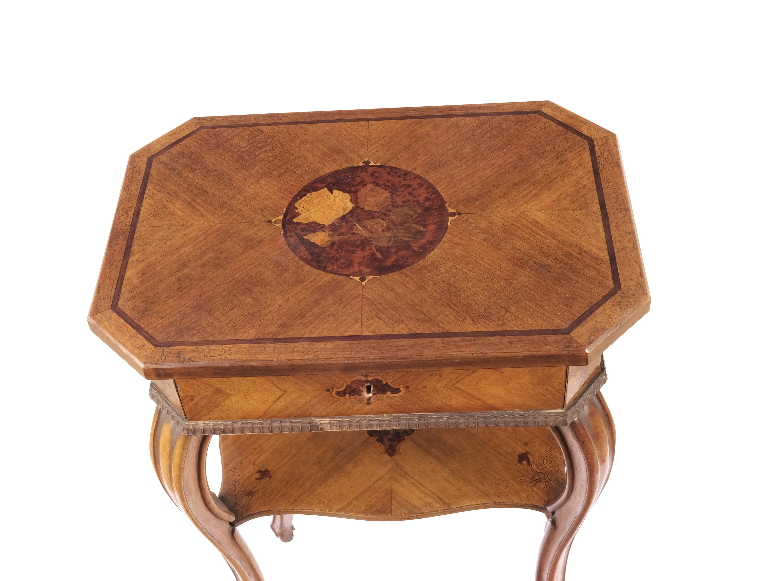 Nussholz furniert und intarsiert
