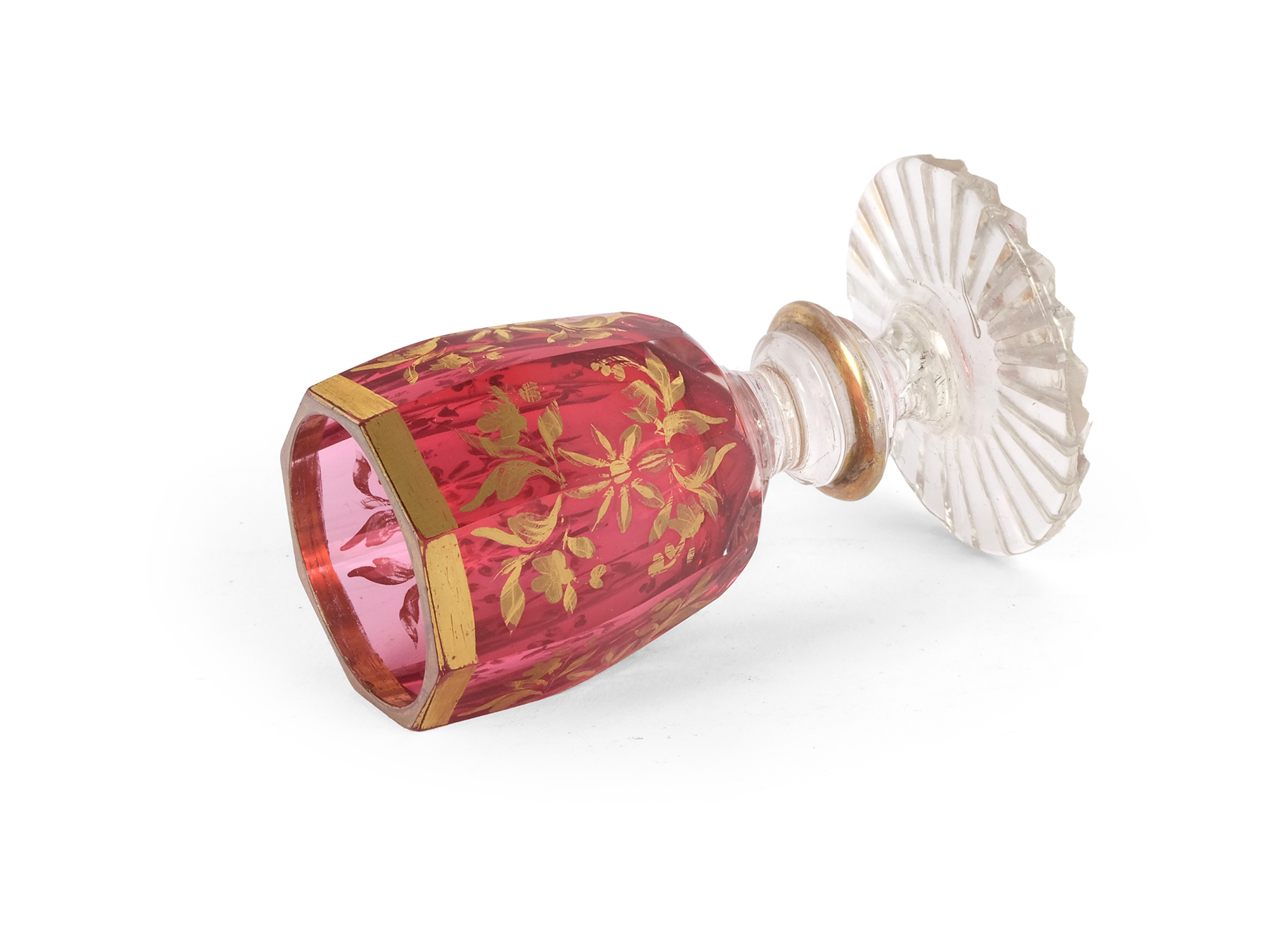 Weißes Glas mit rosa Überfang, vergoldet