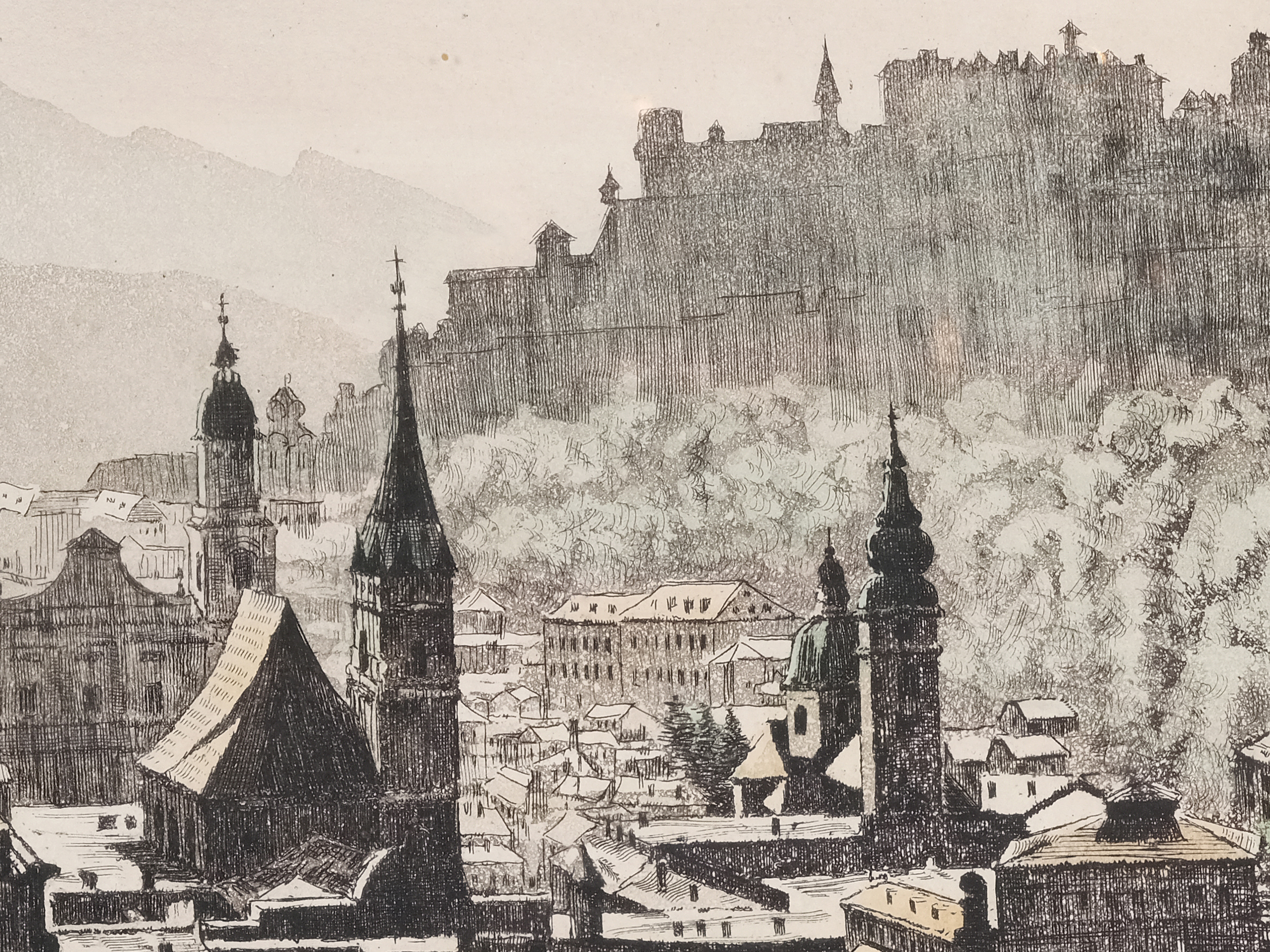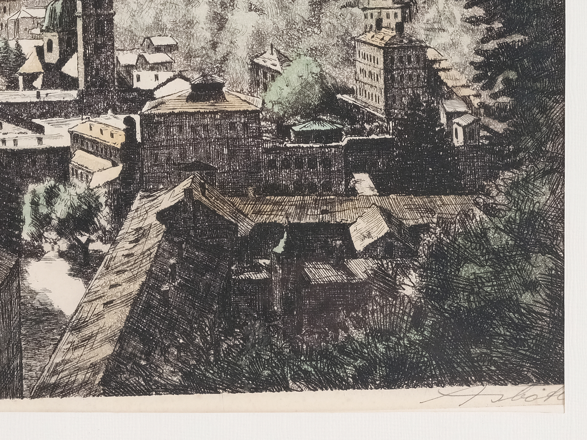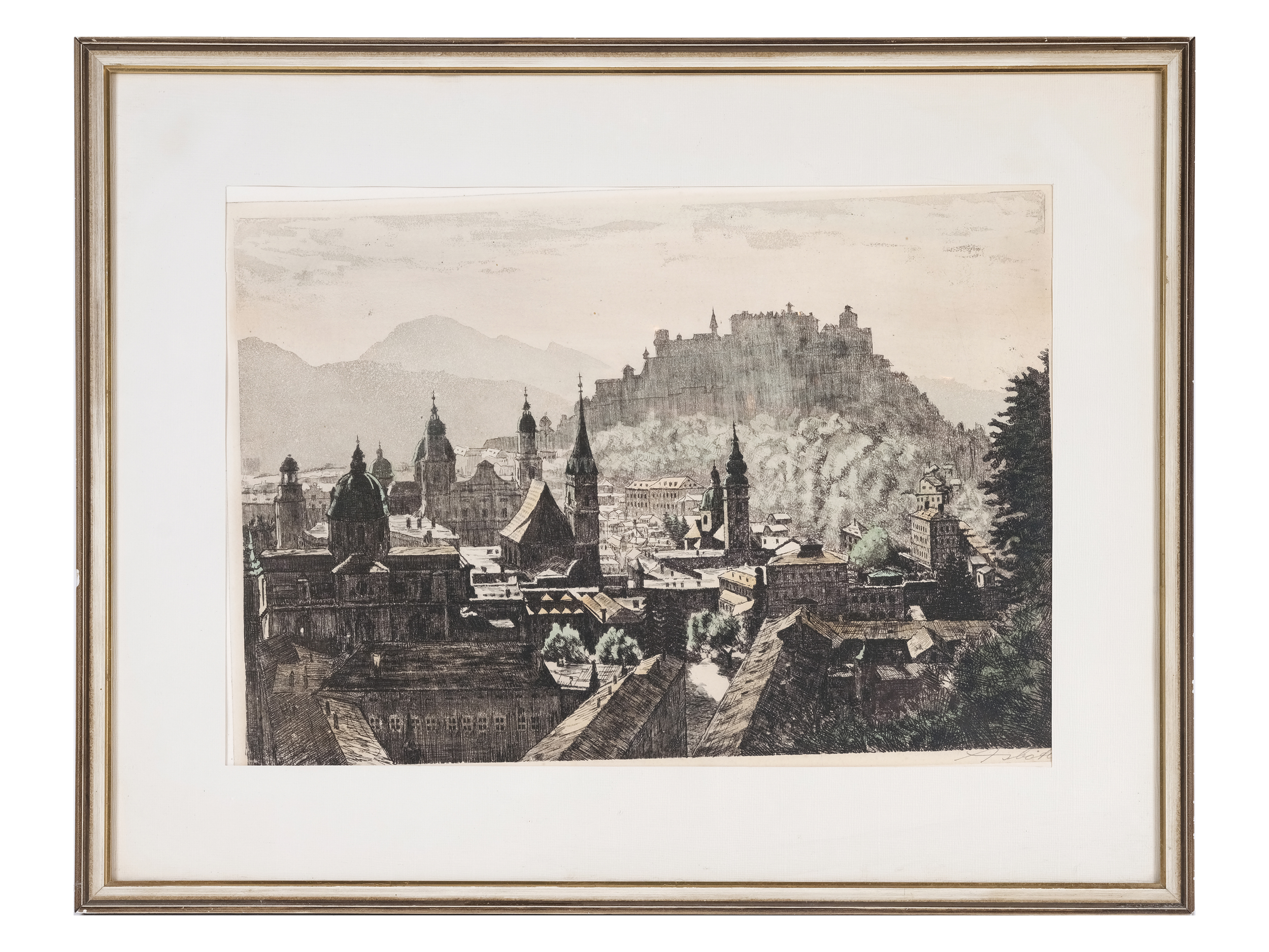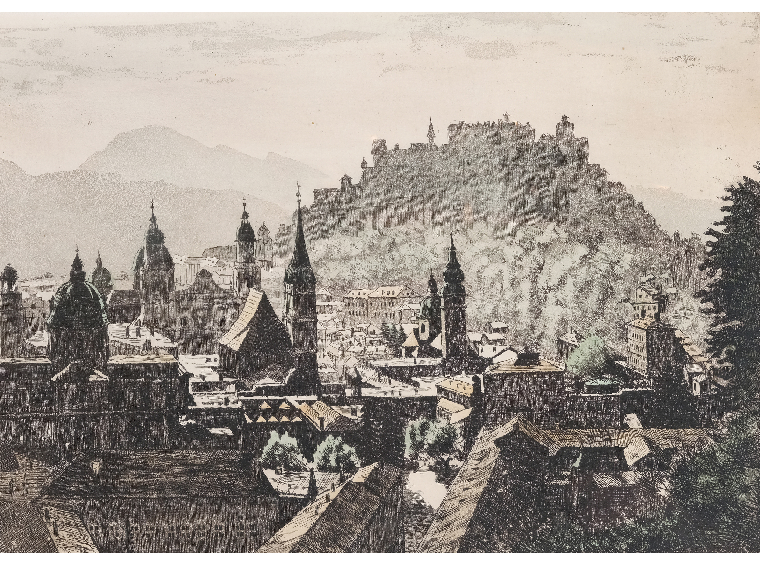 Kolorierte Radierung auf Papier
