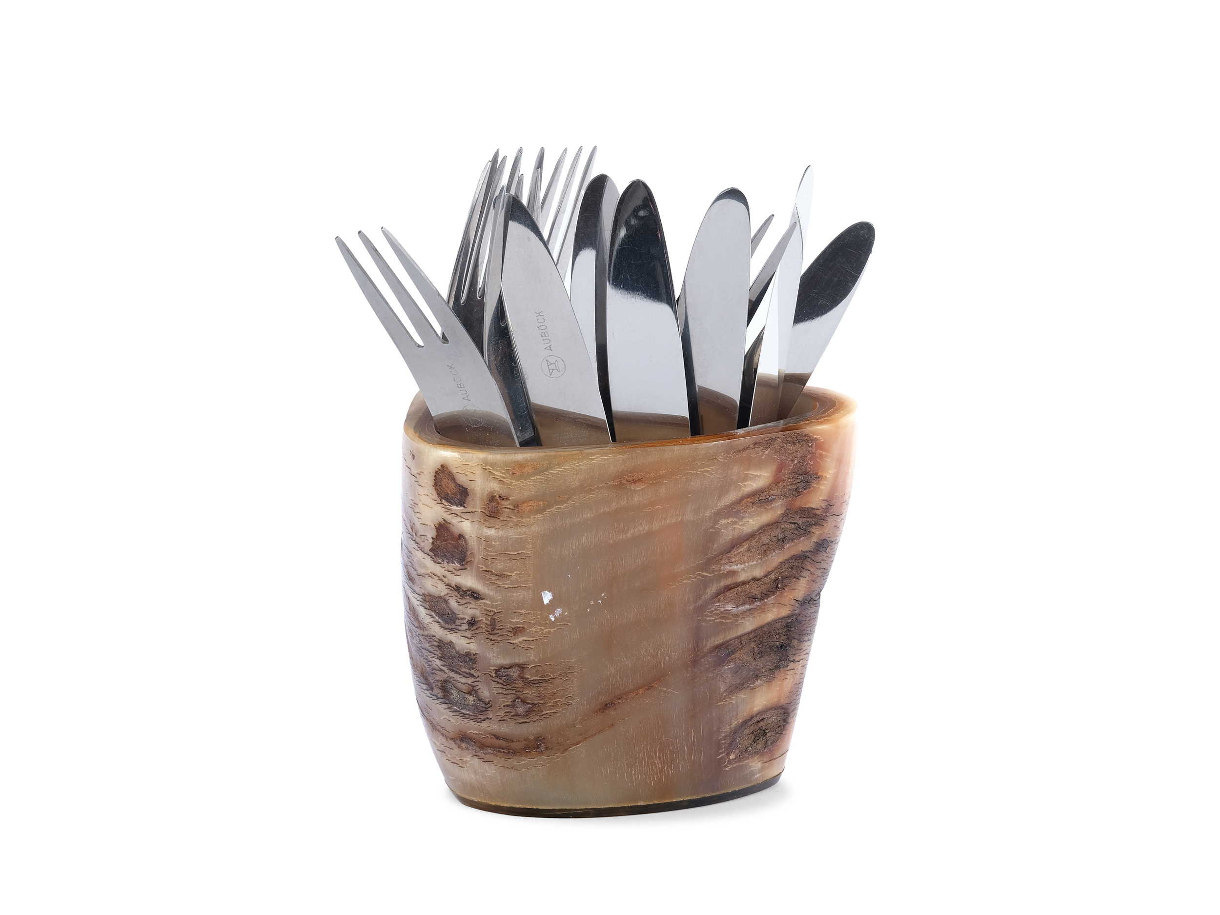 Seltenes Besteck mit Behälter aus Metall & Horn