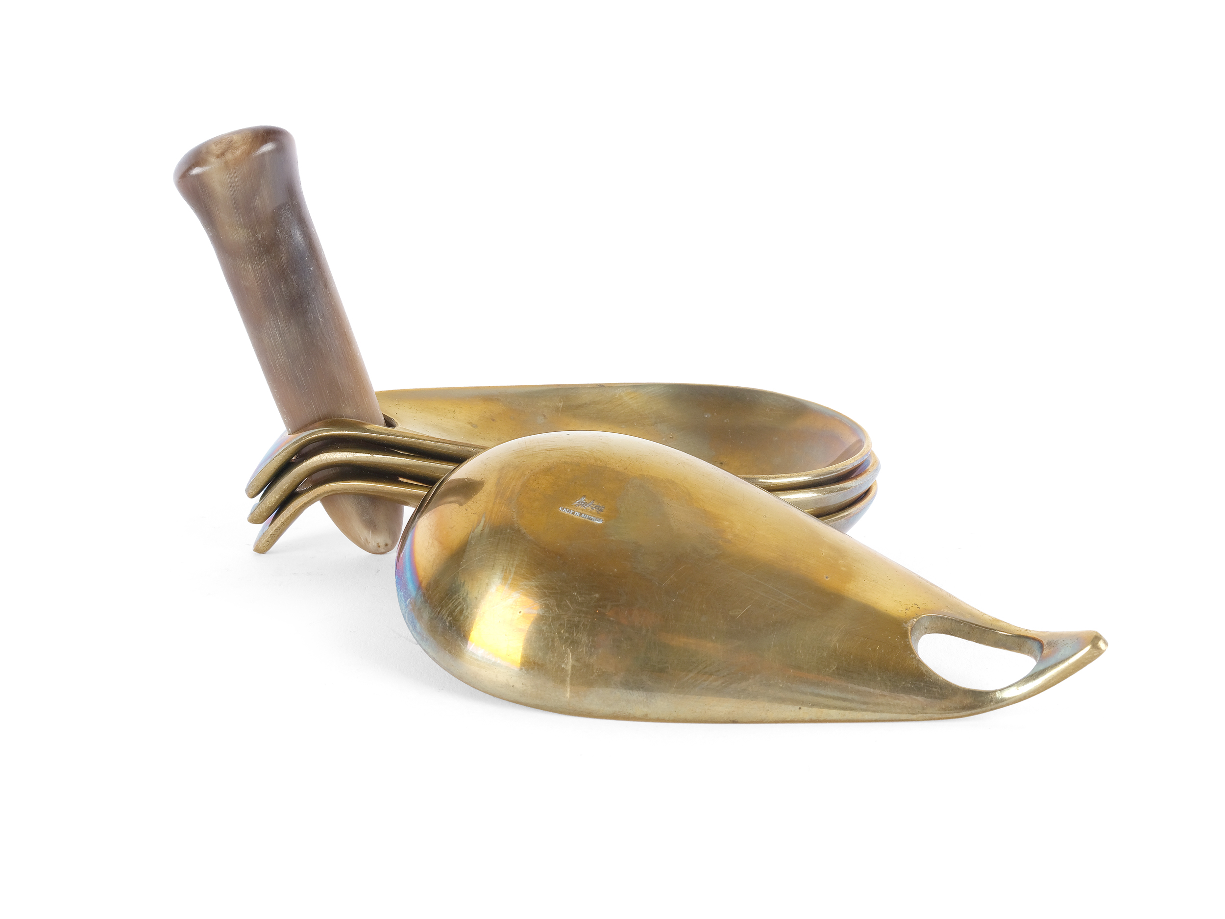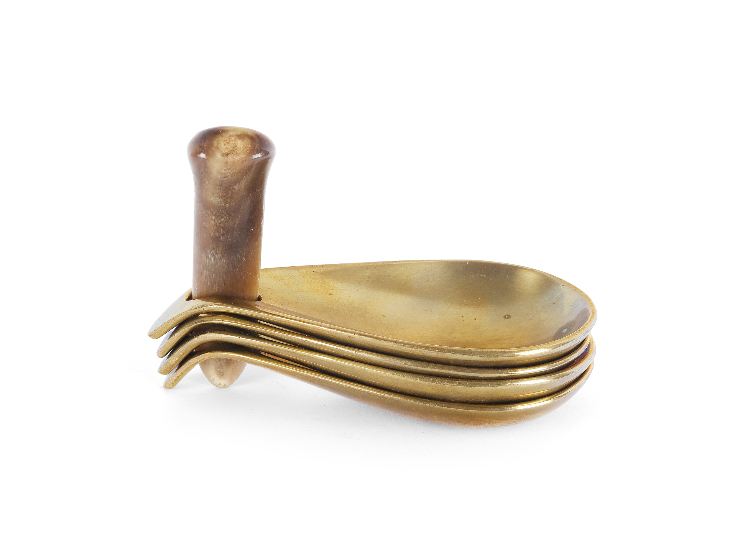 4 Schalen aus Messing, Horn um 1950