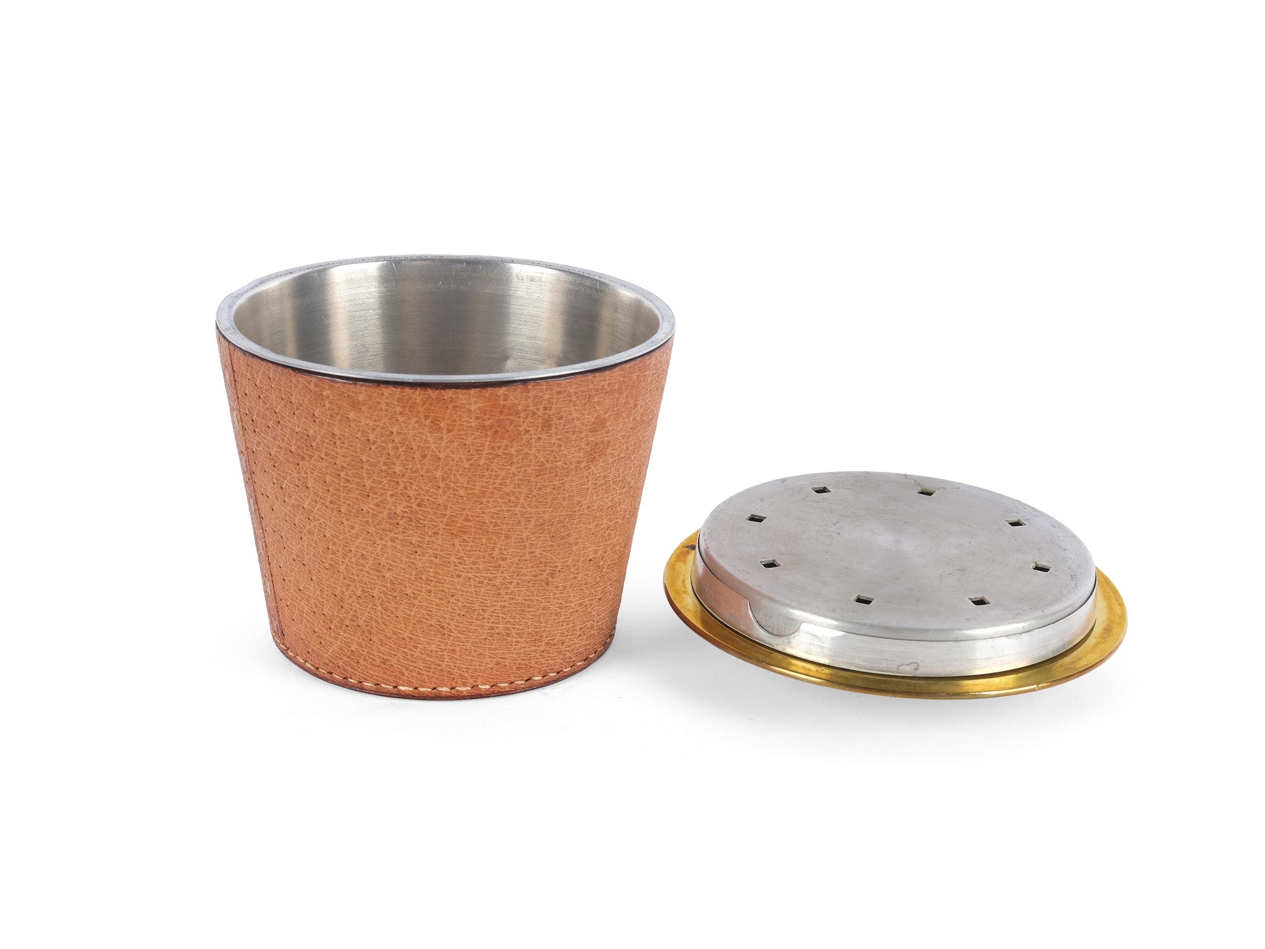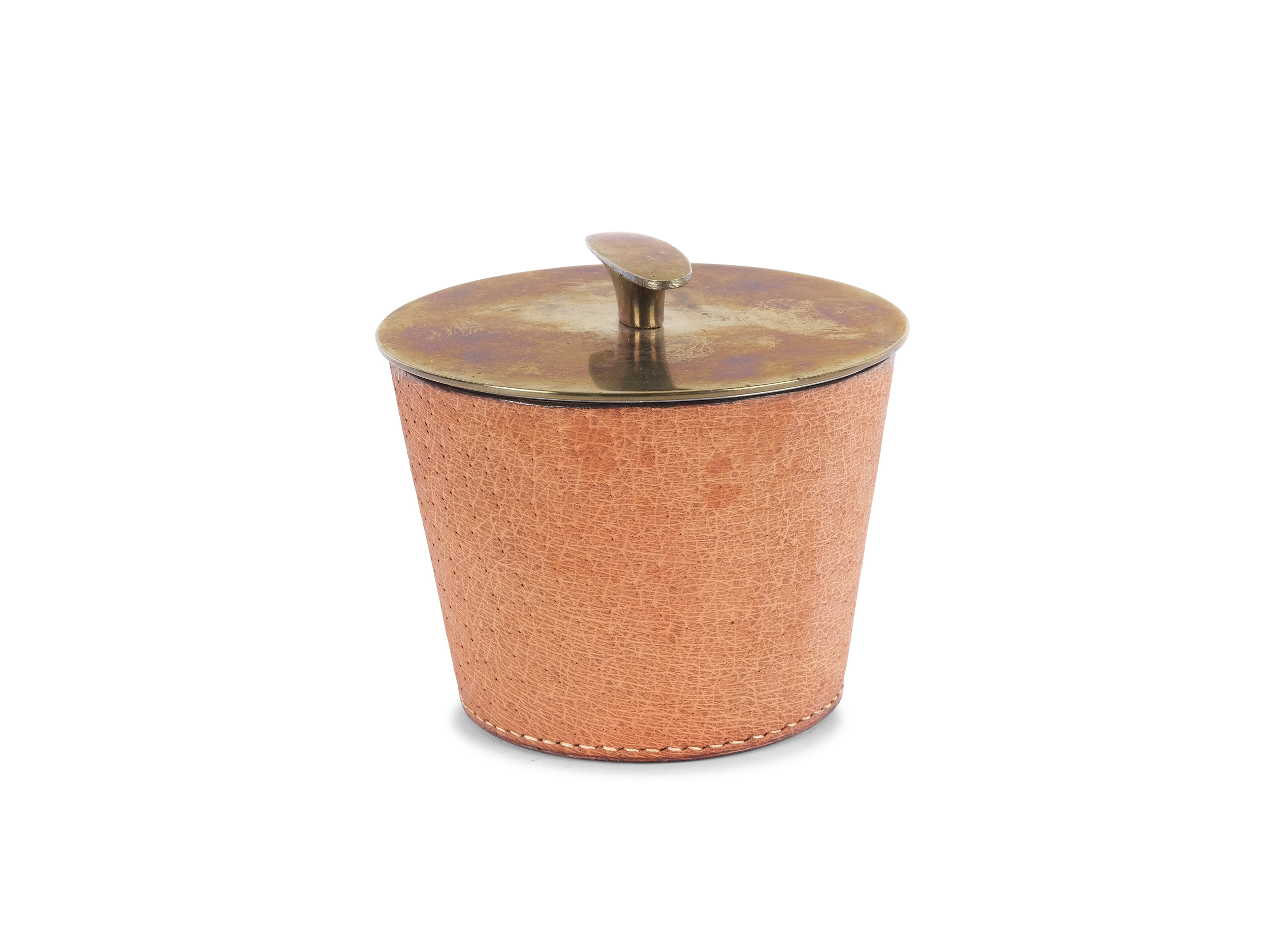 Teedose aus Leder & Messing um 1950