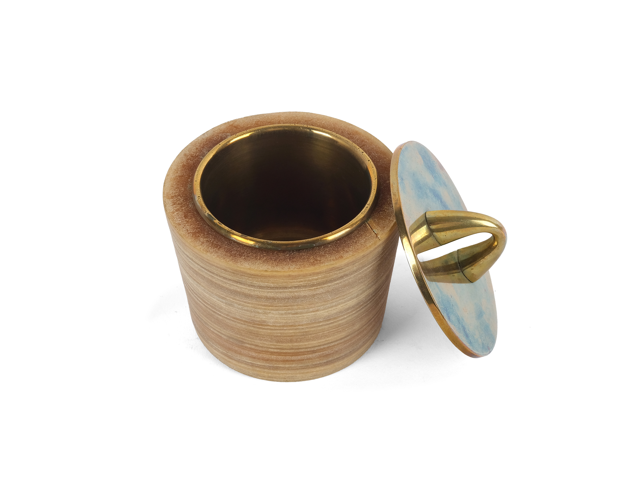 Deckeldose aus Horn und Messing um 1950