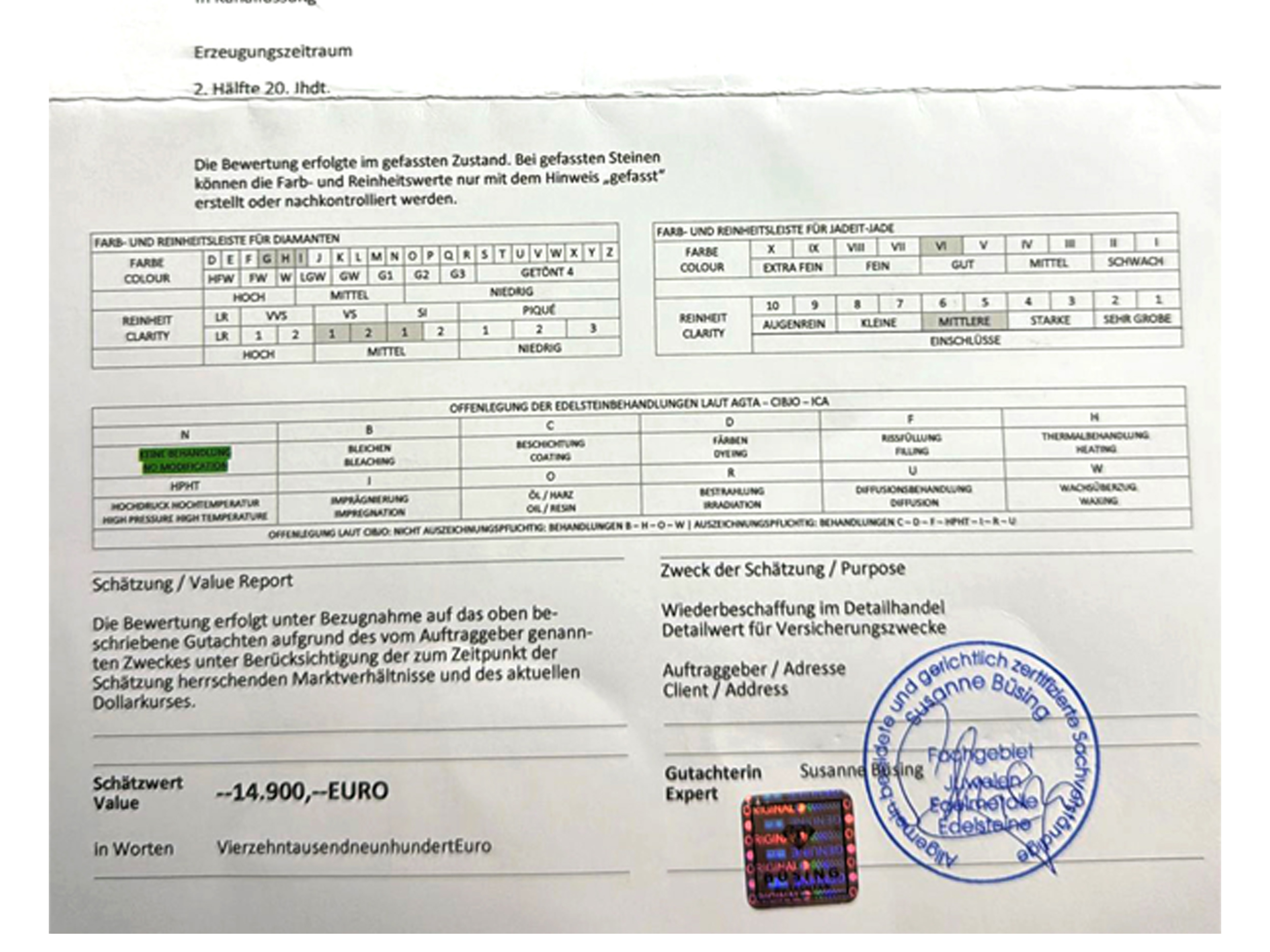 Wiederbeschaffungswert laut beiliegendem Gutachten beträgt € 14.900.