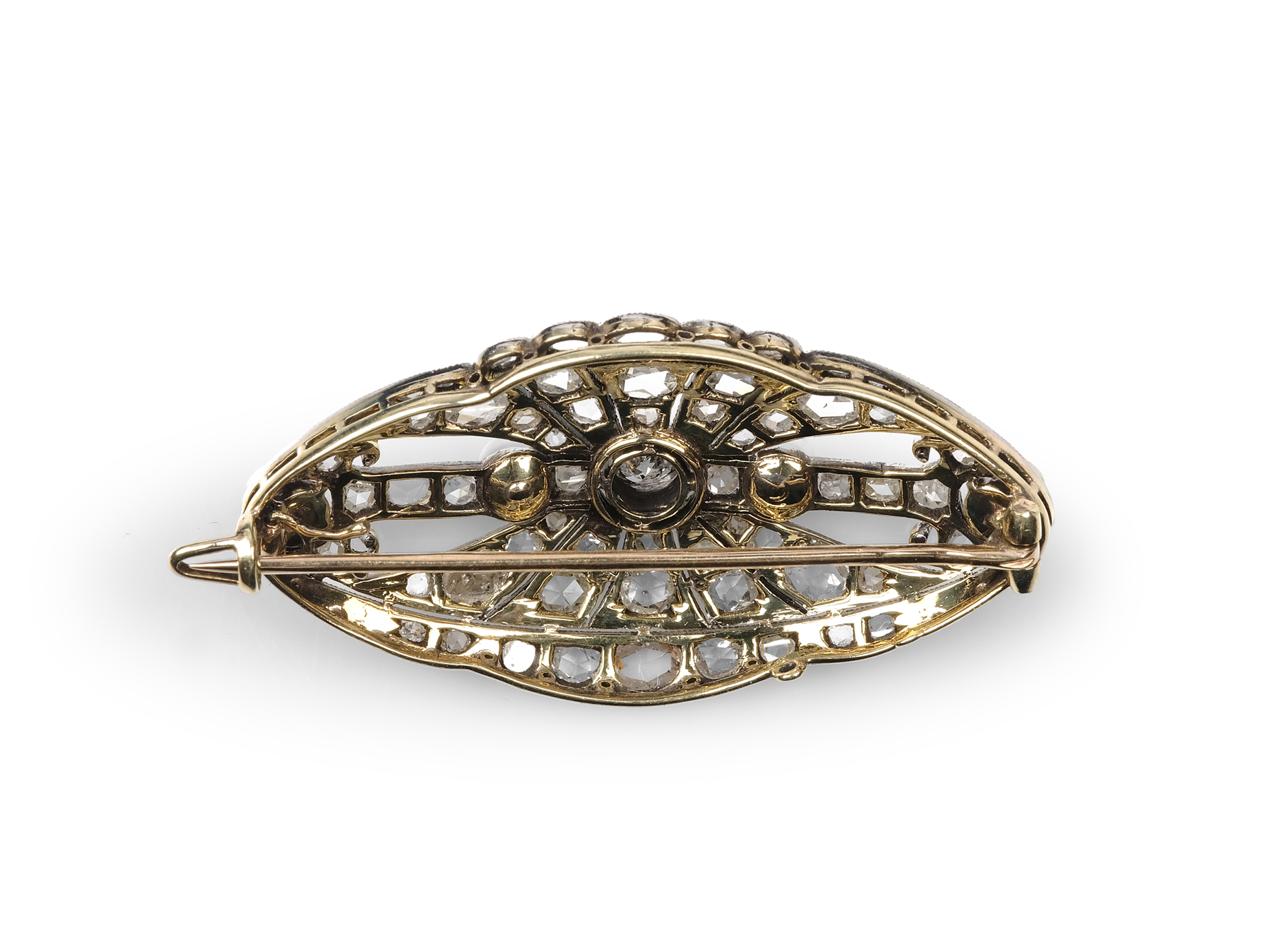 Decorated with old-cut diamonds, 4 pearls, and numerous diamonds in various cuts