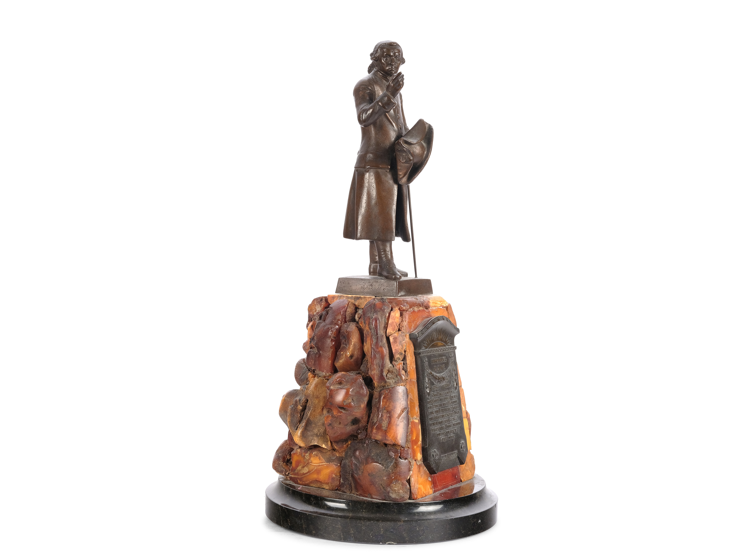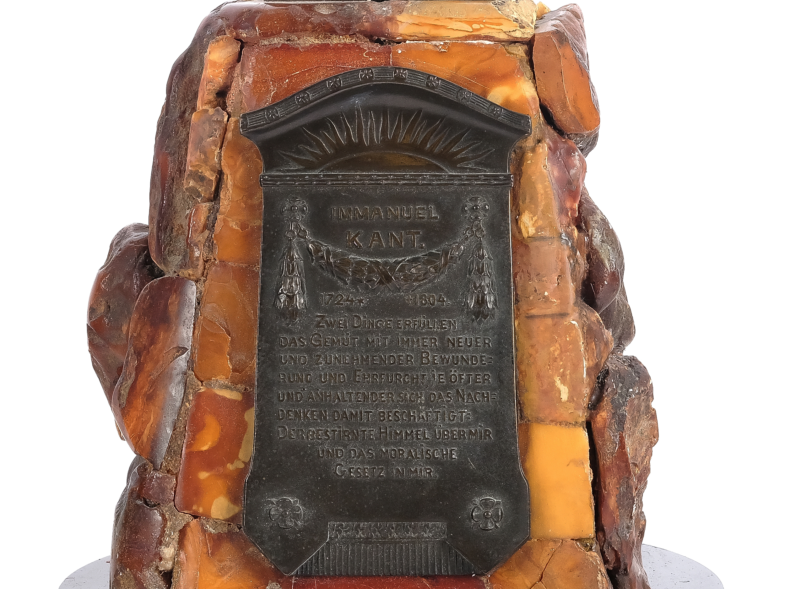 On an amber pedestal with plaque, modeled after the Kant memorial plaque in Duisburg from 1904