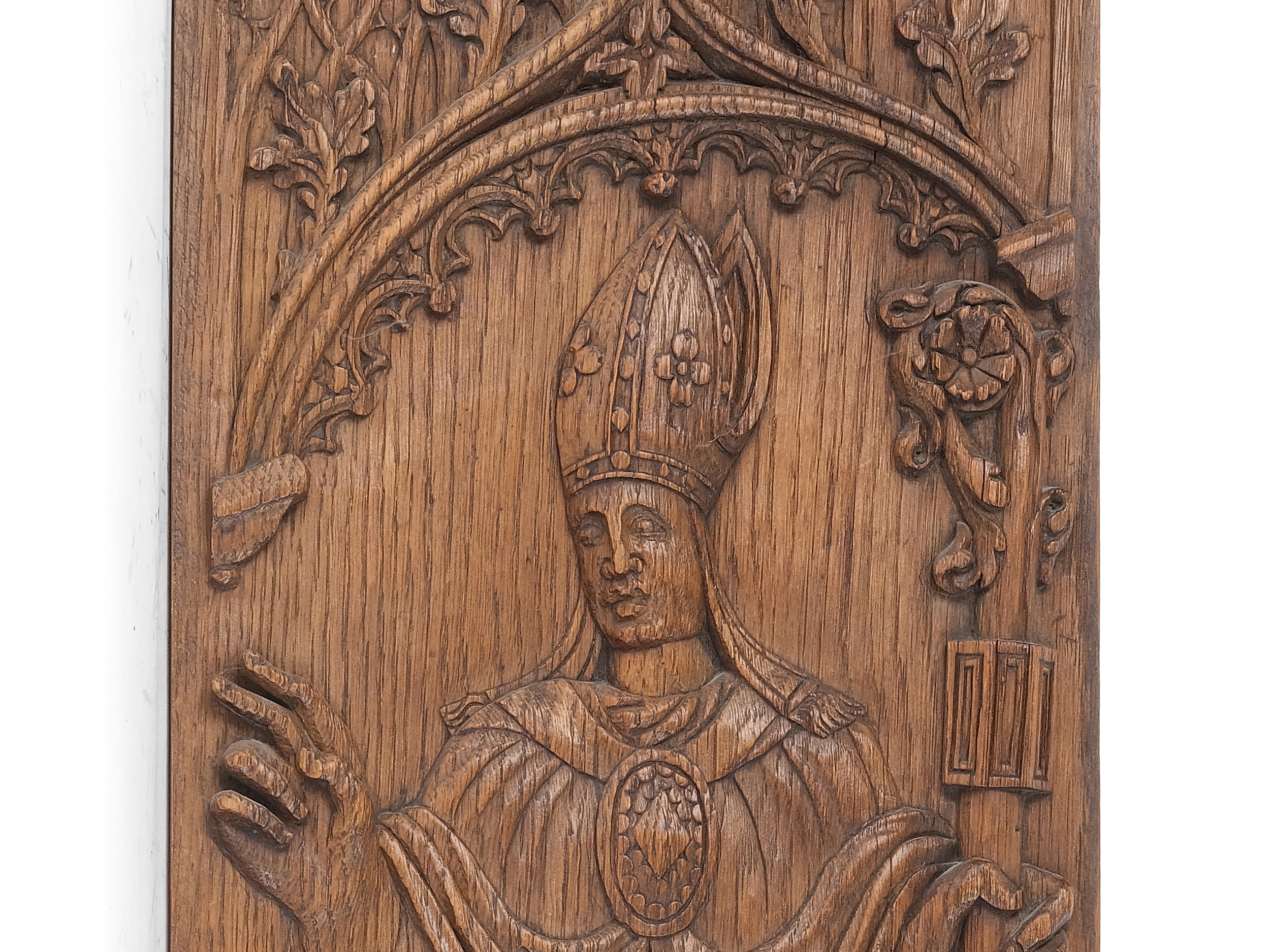 The bishop of Myra is one of the most popular saints of the Middle Ages. His attributes are the three golden balls (often apples or loaves of bread) – a reference to the legend in which he gave three impoverished virgins their dowry – as well as the bishop’s crook and mitre.