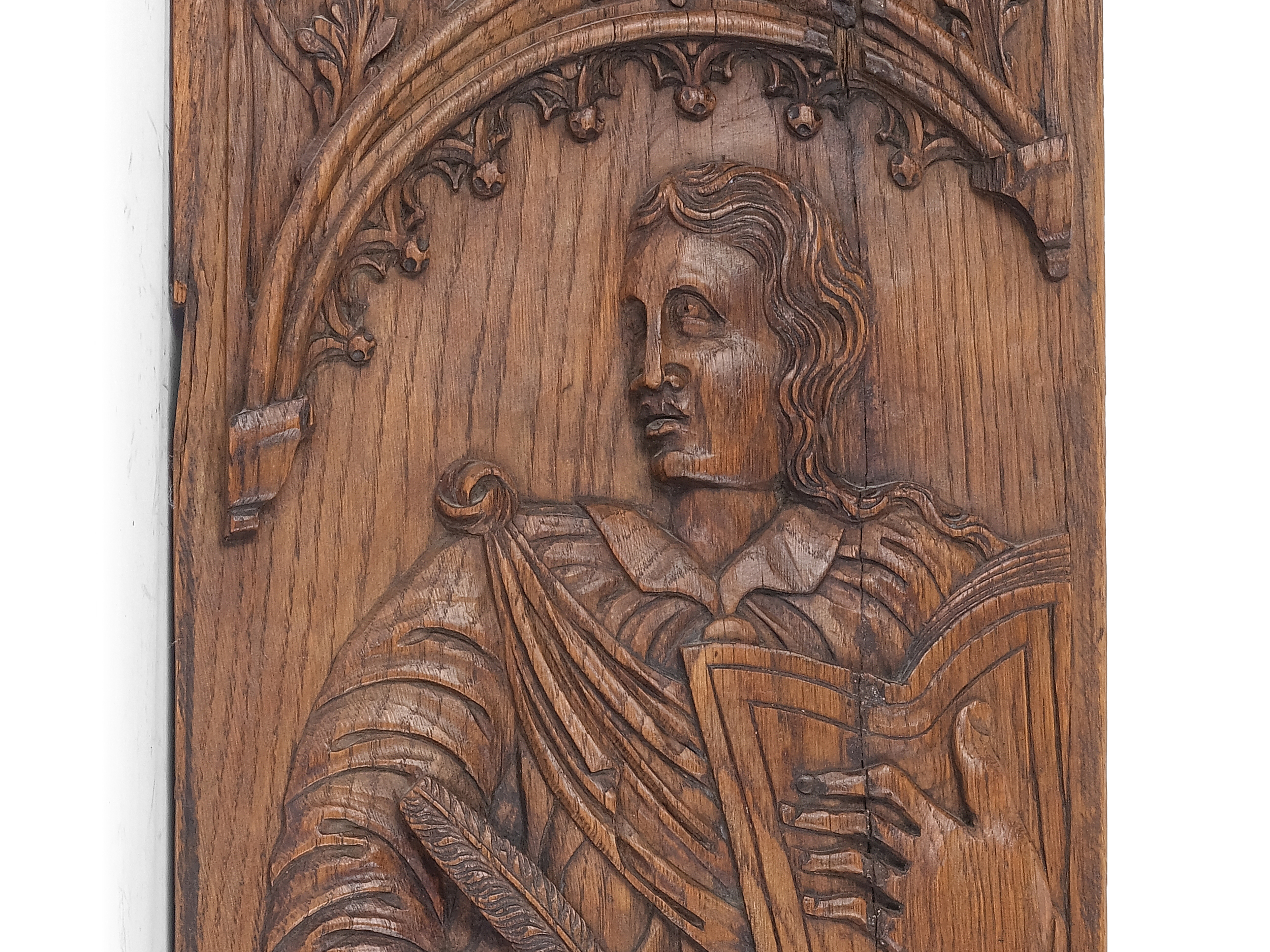 John the Evangelist is usually depicted as a young man, often beardless, holding a chalice from which a snake is escaping – a reference to the poisoning he survived. He may also be accompanied by the Gospel book or the eagle (his evangelist symbol).
