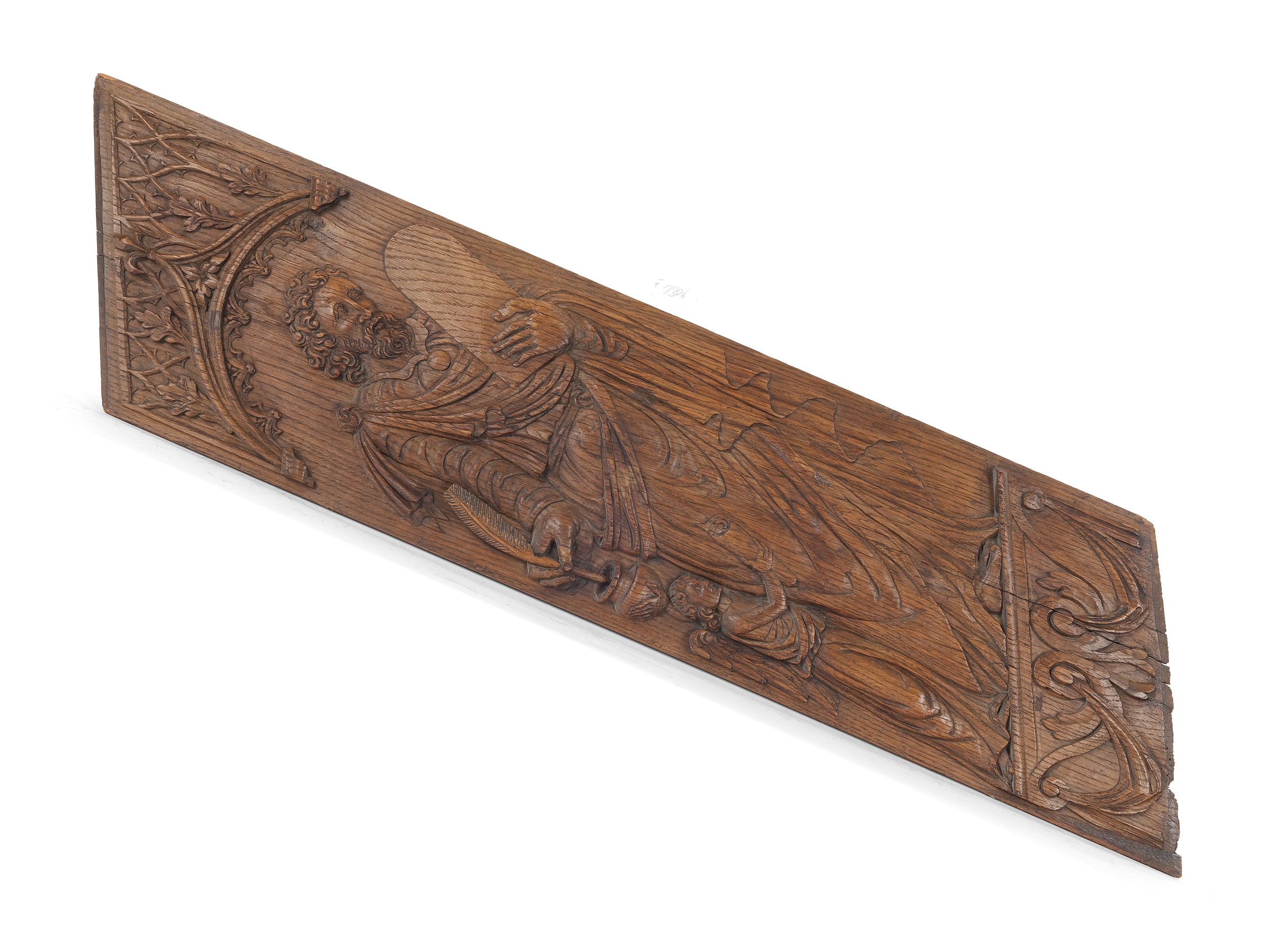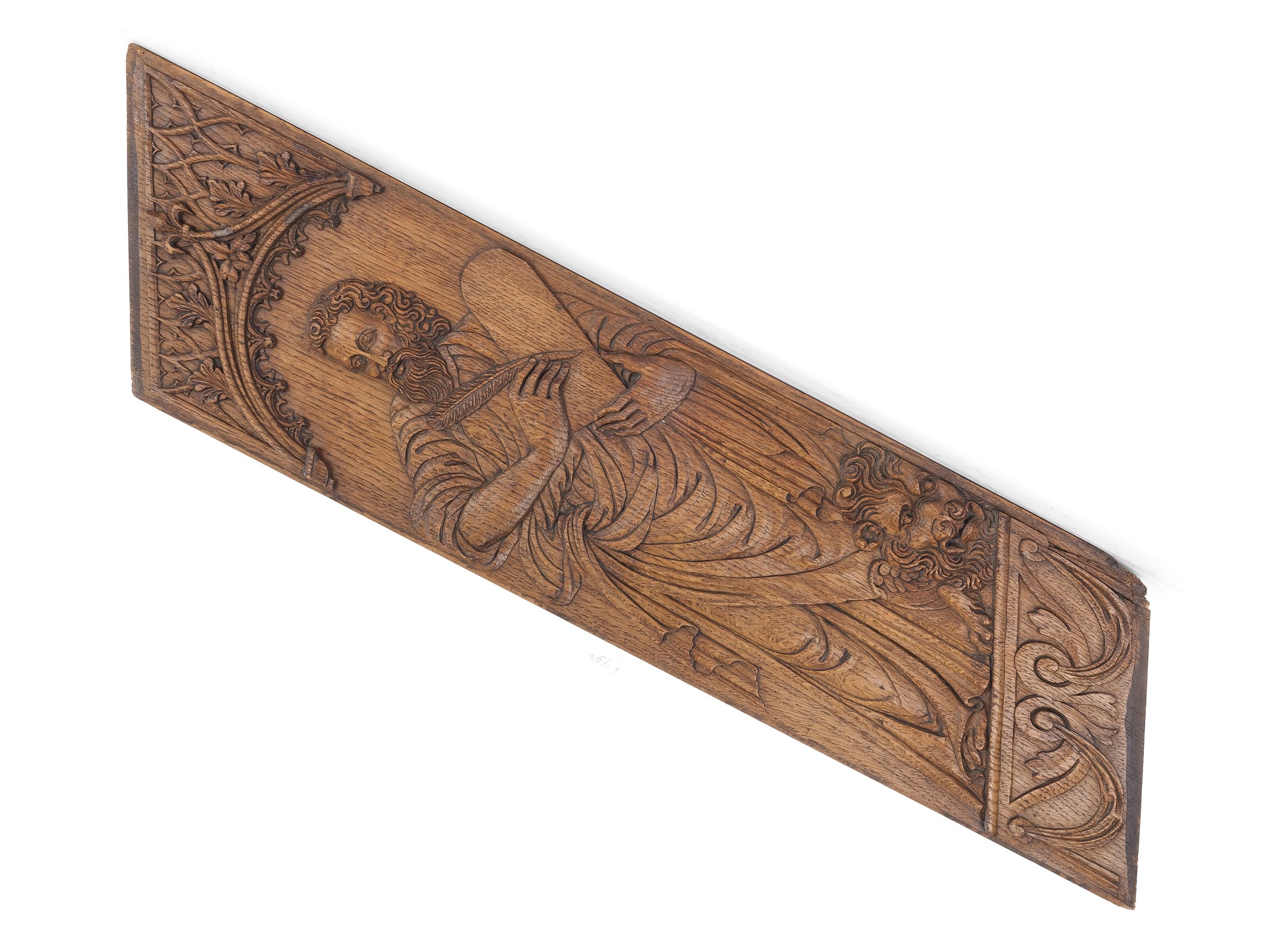 Tobias, a character from the Old Testament Book of Tobit, is often depicted accompanied by the archangel Raphael. He is typically shown traveling, with a fish in his hand—a reference to the miraculous remedy obtained from its gall. Raphael, as his divine companion, usually appears as a young man with wings, a walking stick, and a pilgrim’s bag.