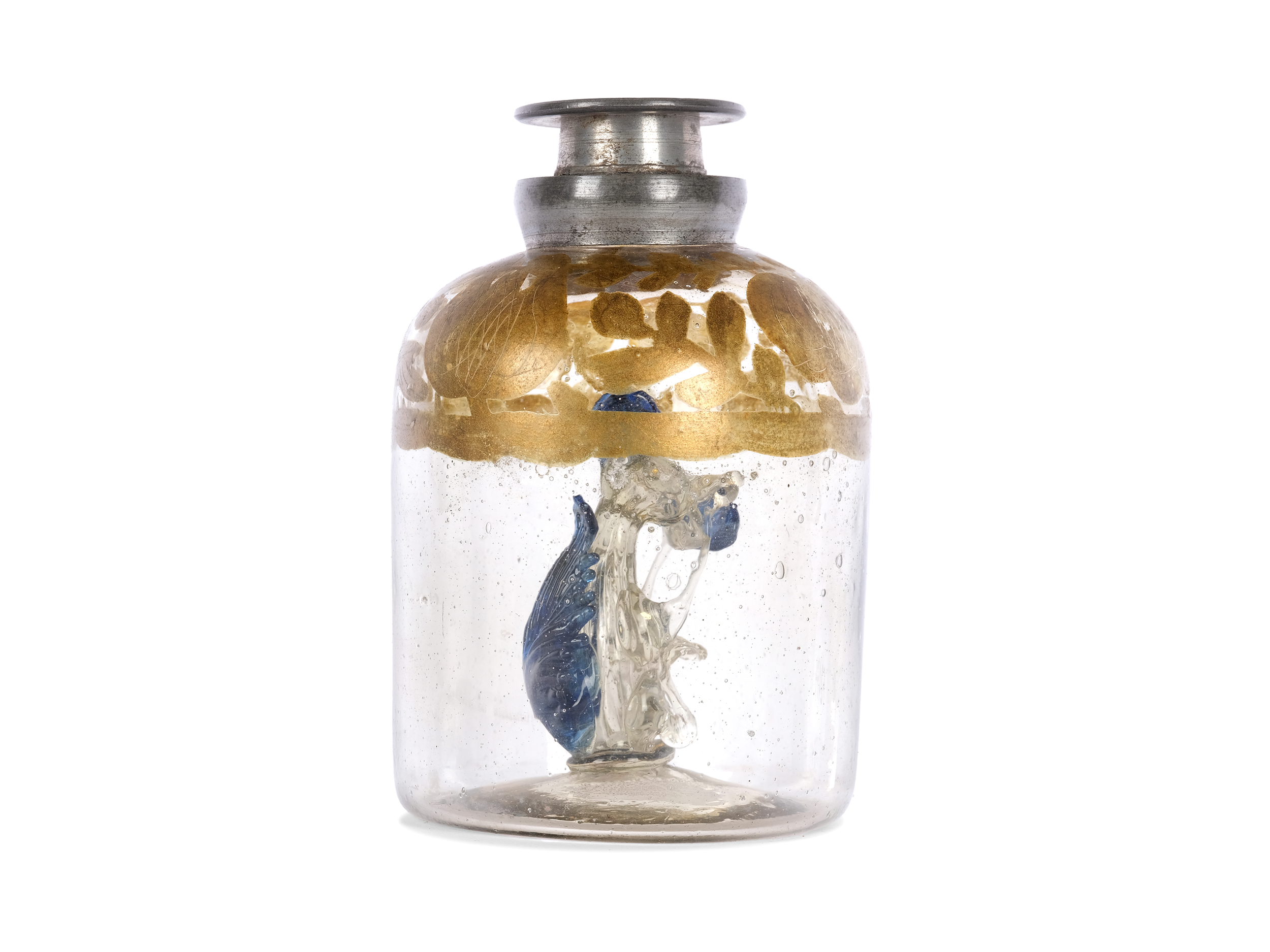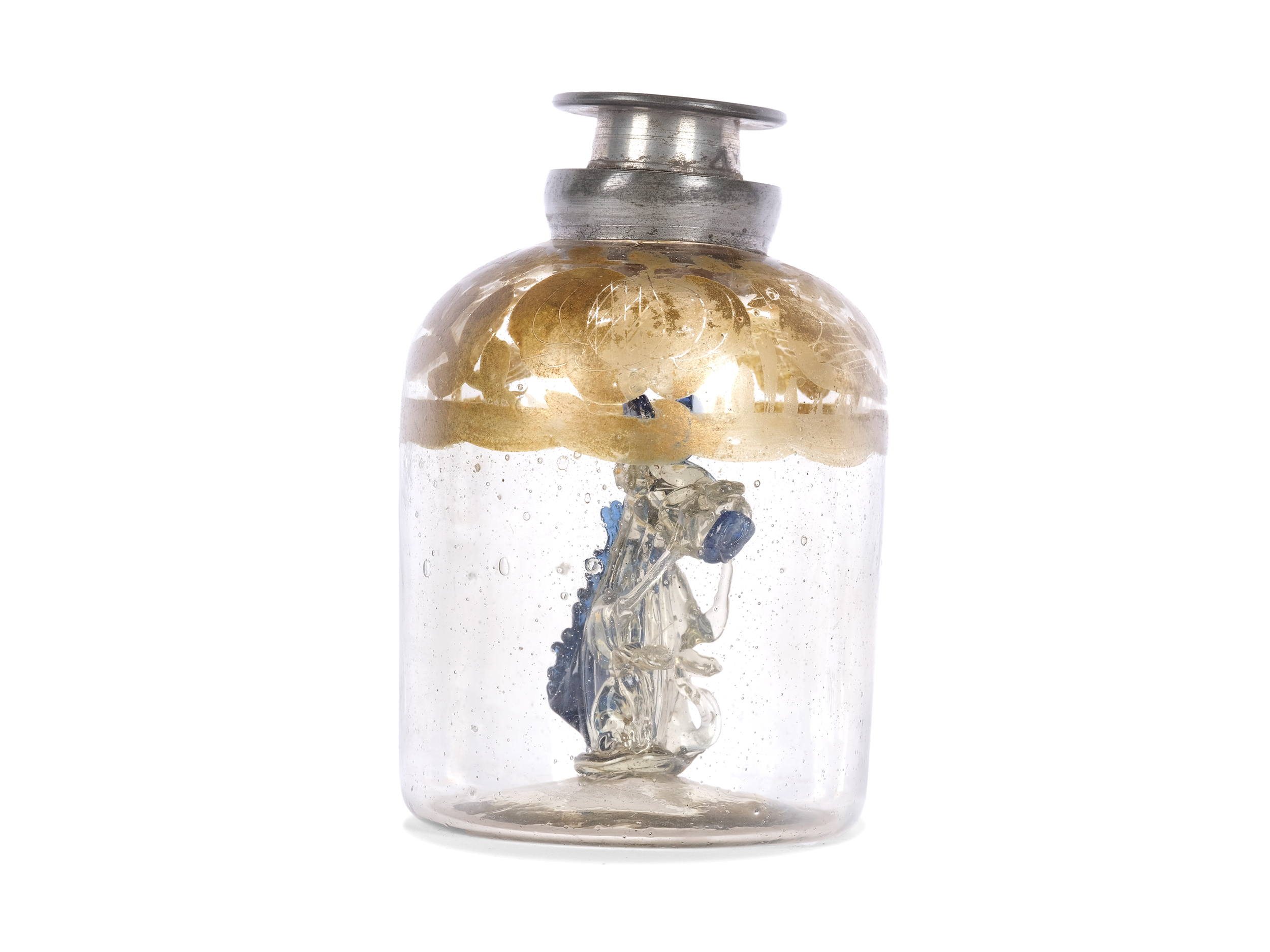 Glas umlaufend bemalt, Zinnverschluss