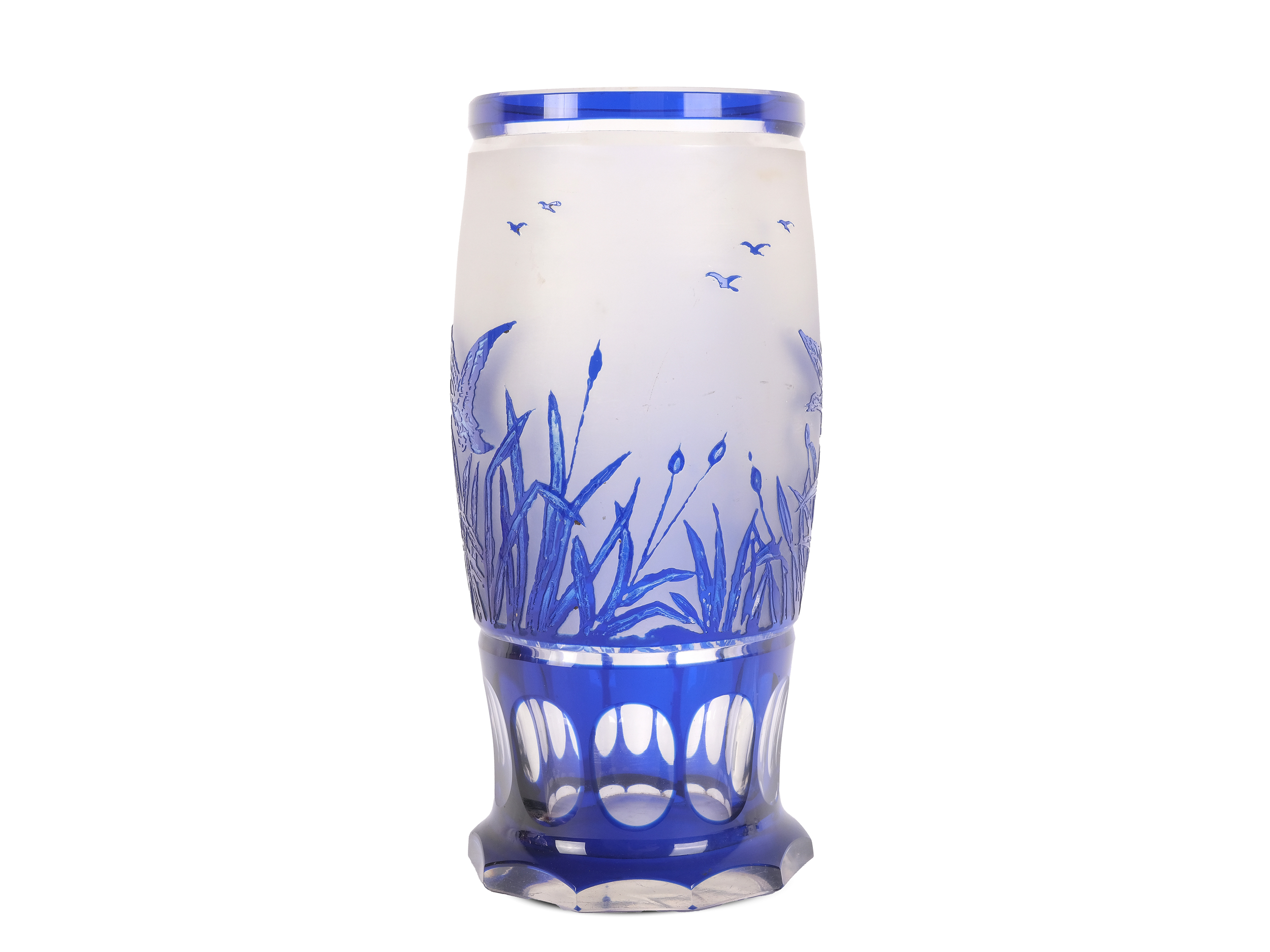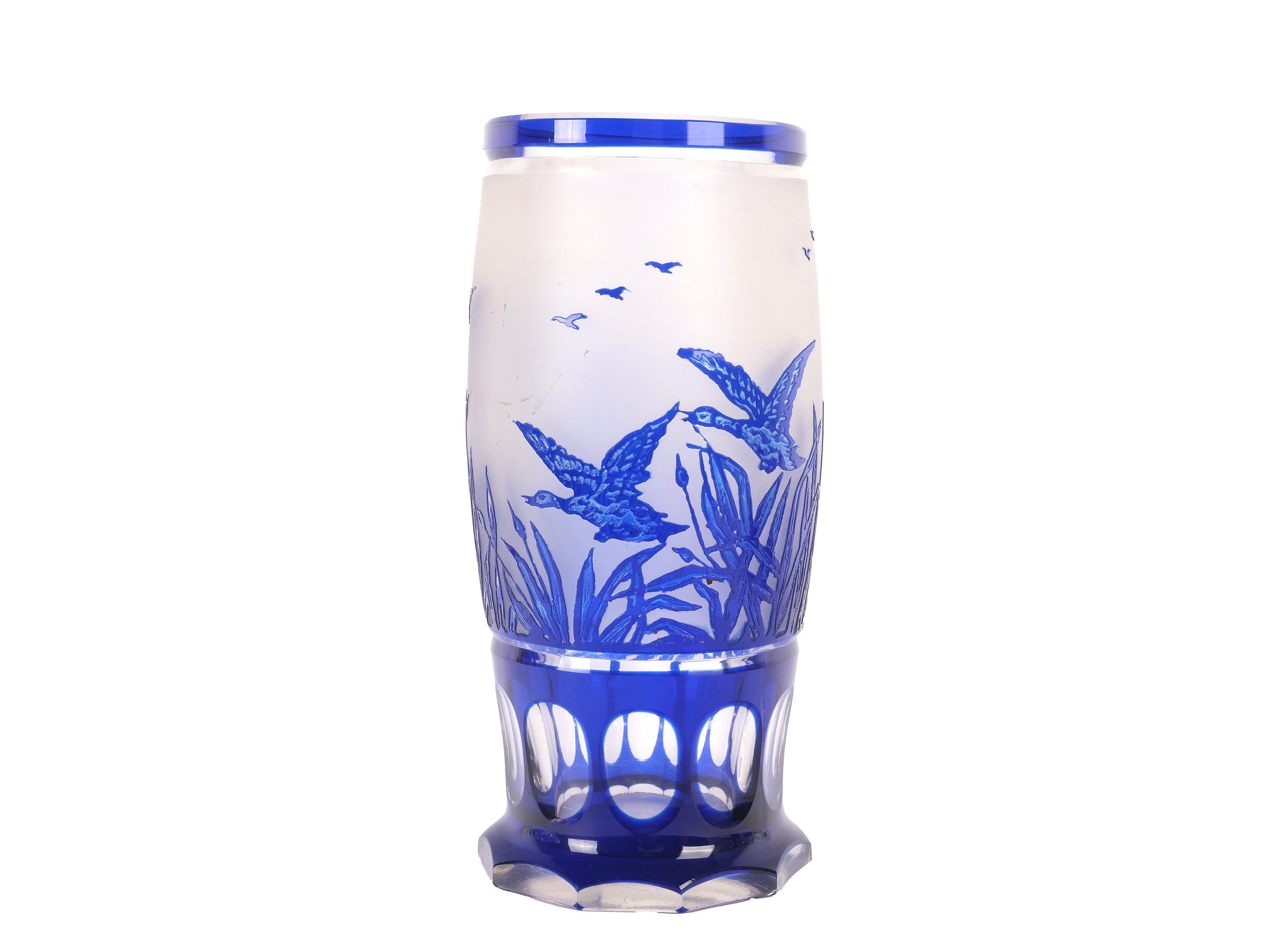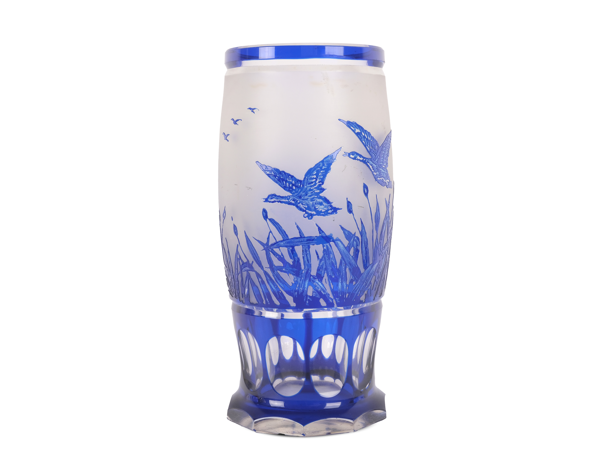 Geschliffen Im Hochrelief, umlaufend fliegende Wildgänse