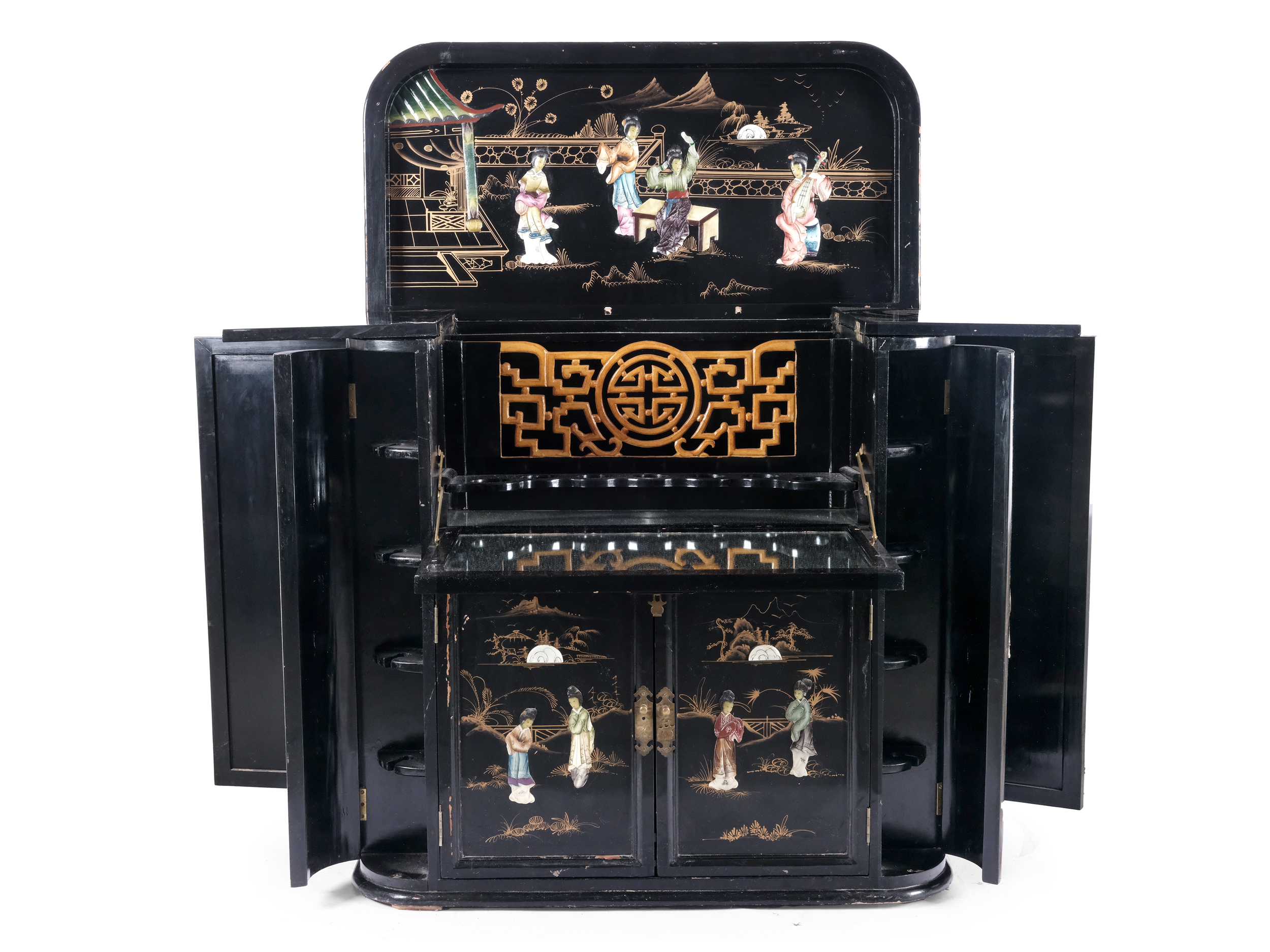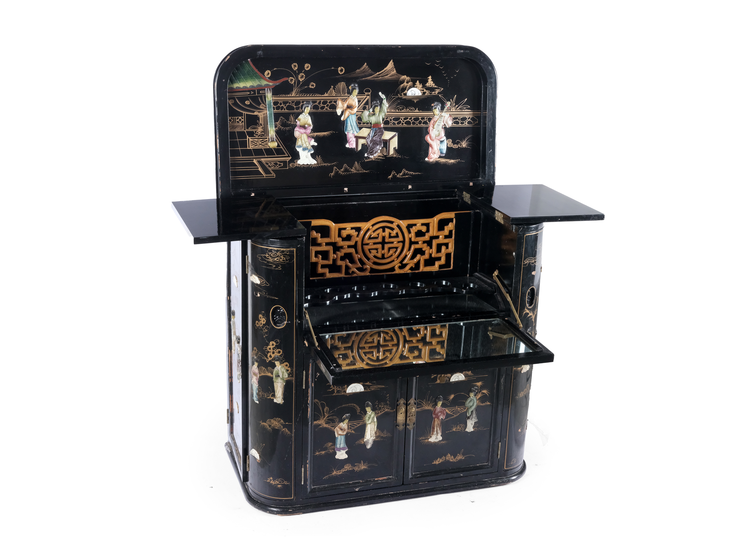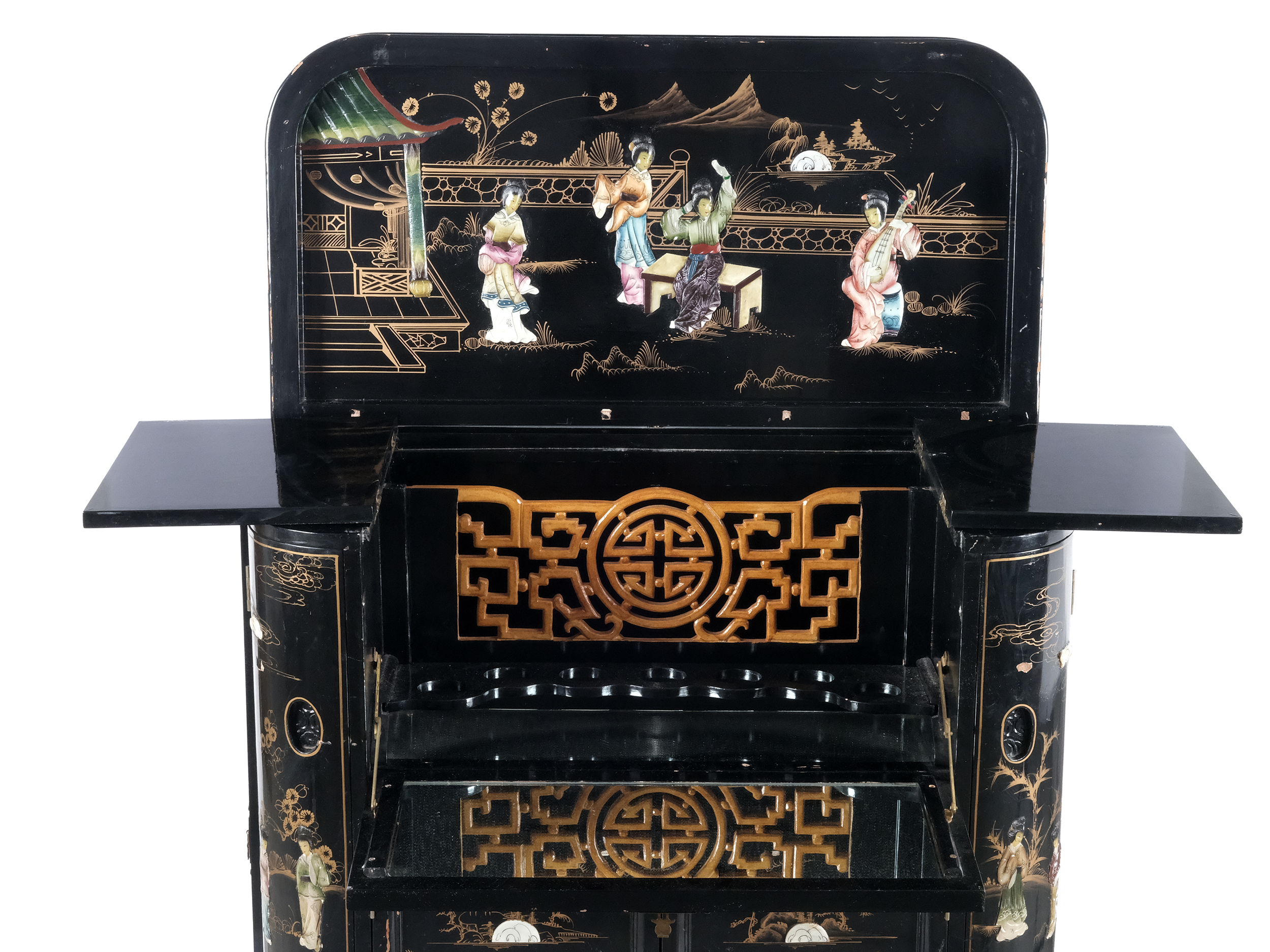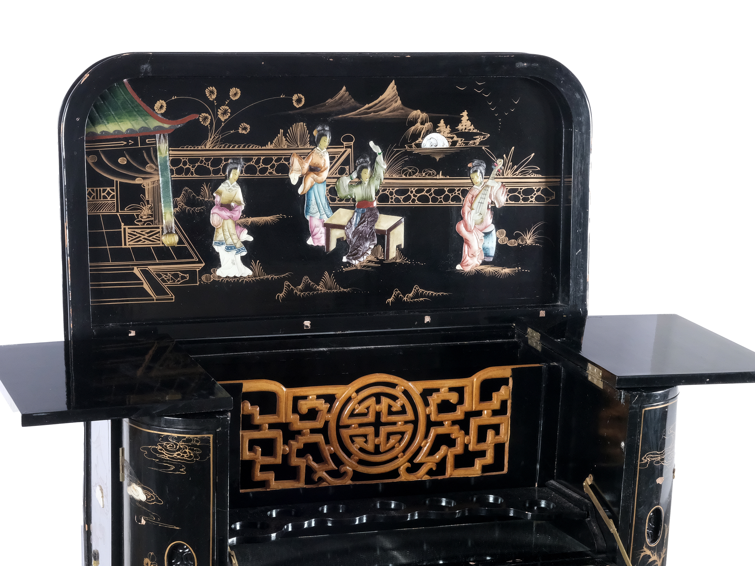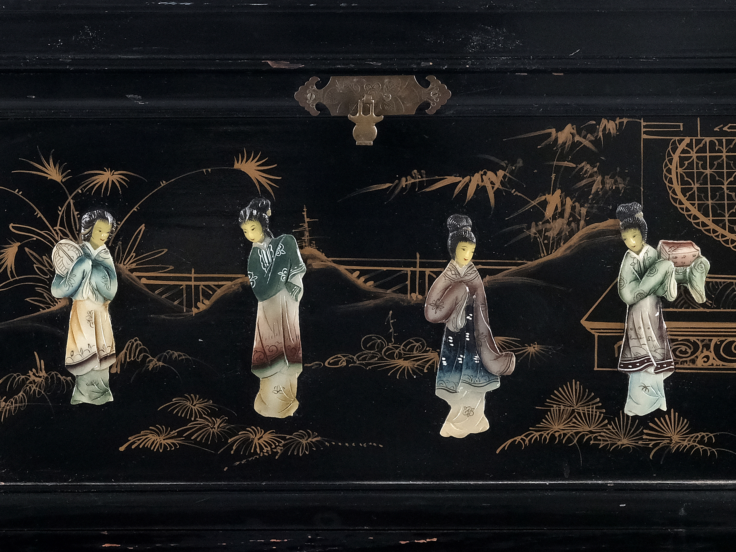 Holz, Lack, Figuren im Relief