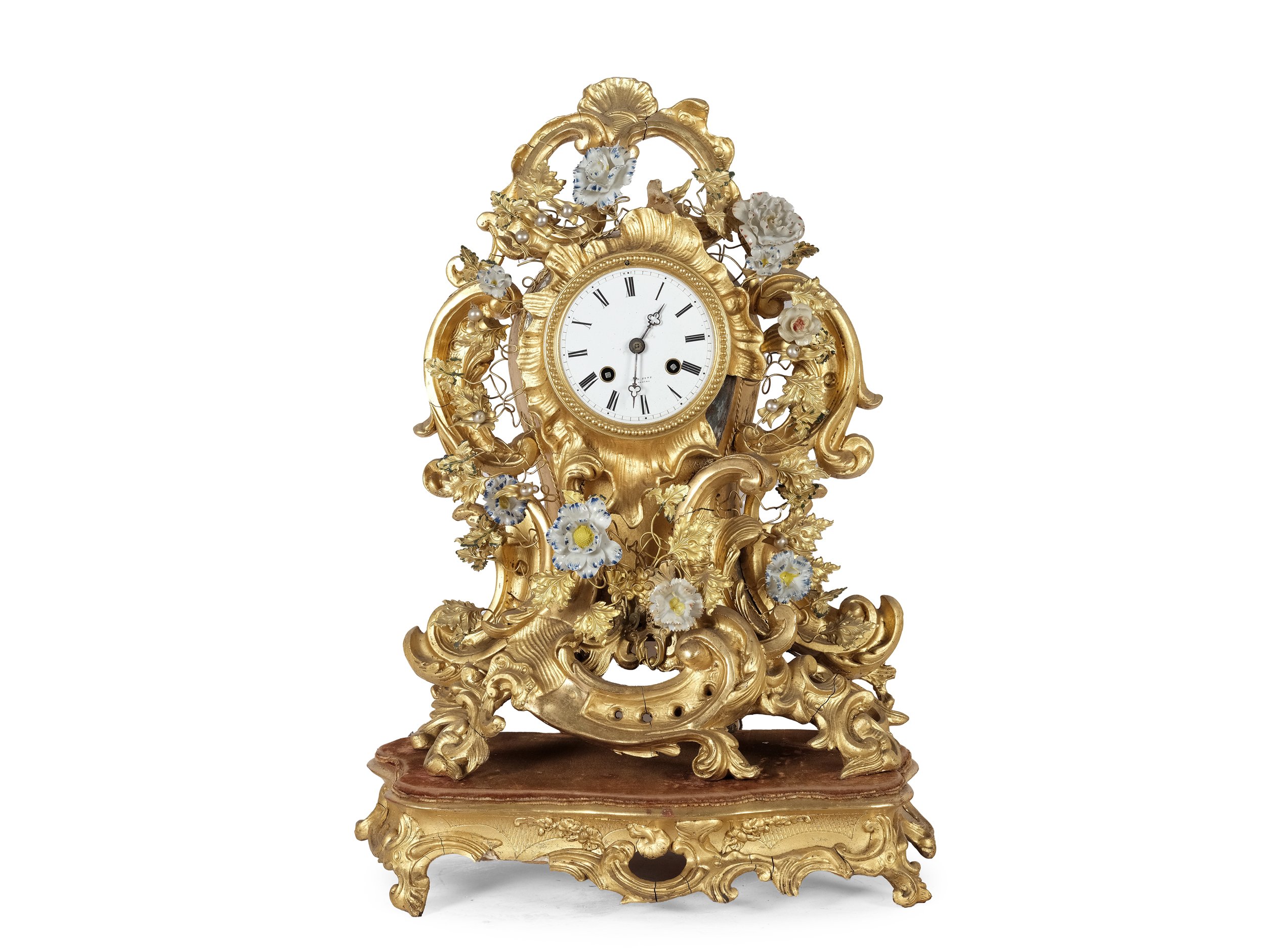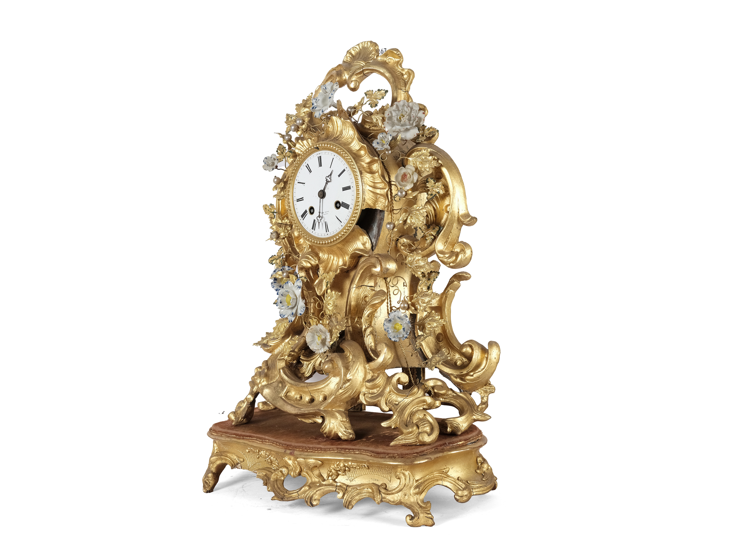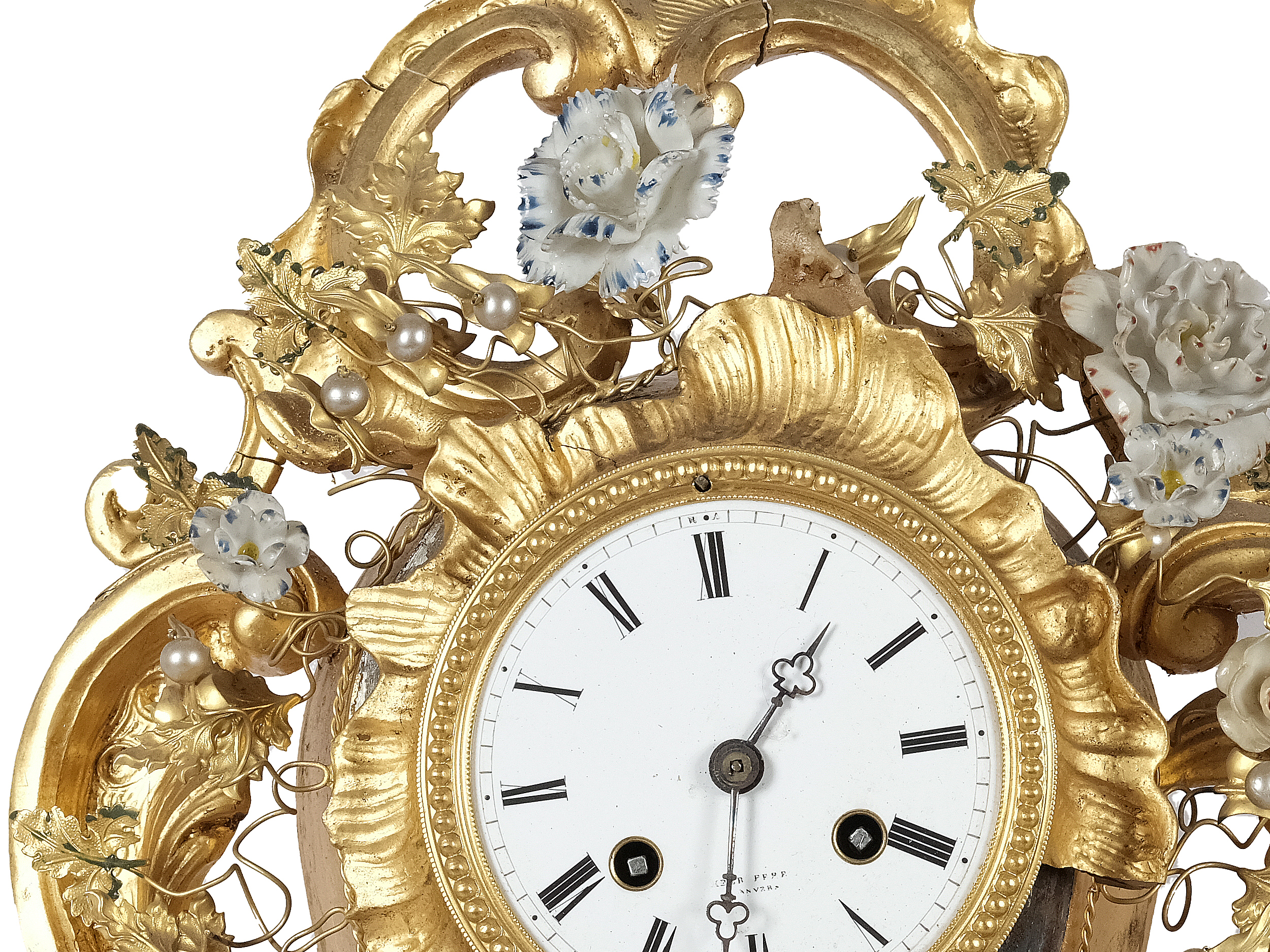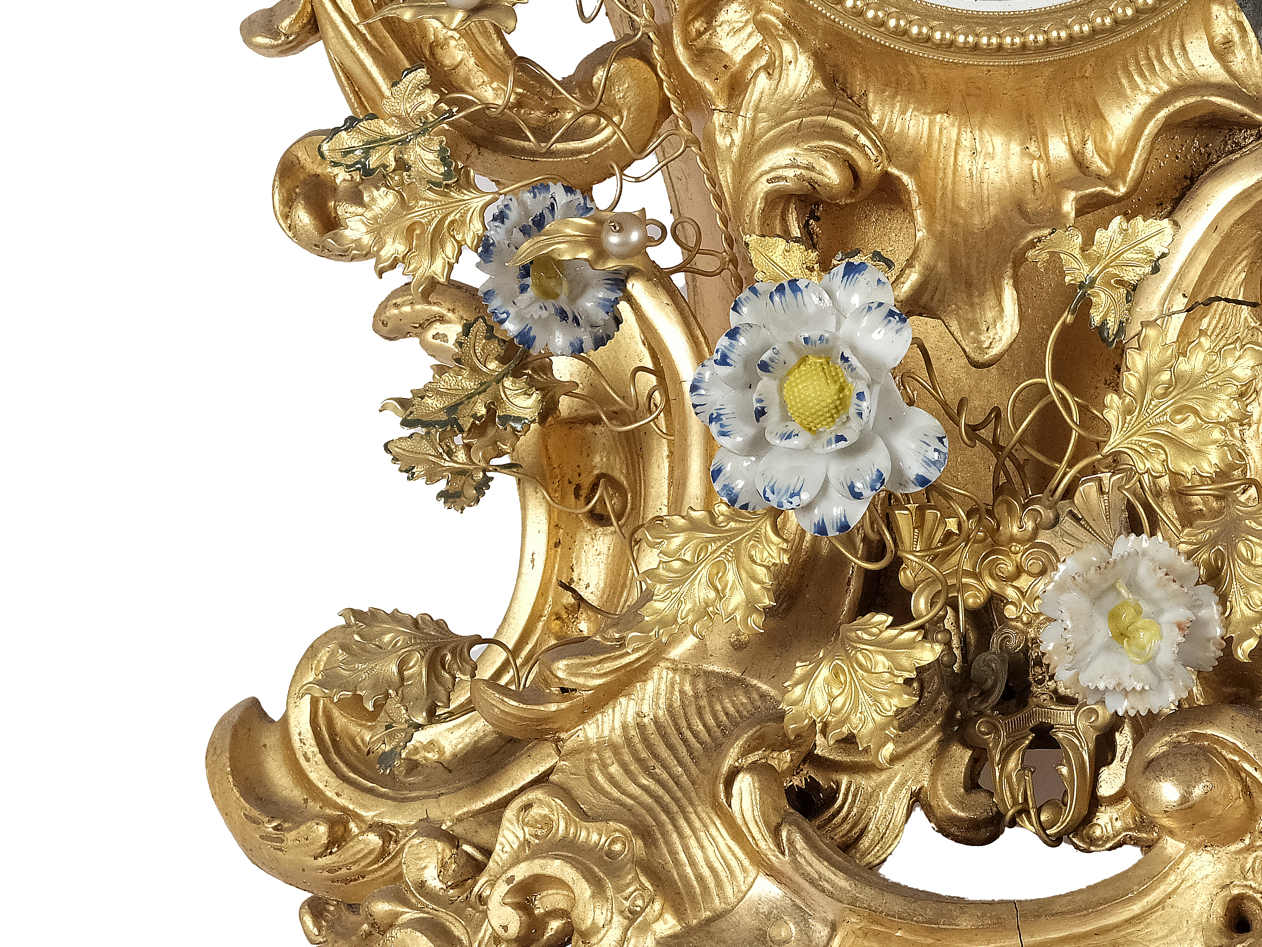 Bronze & Masse vergoldet, Porzellanblumen