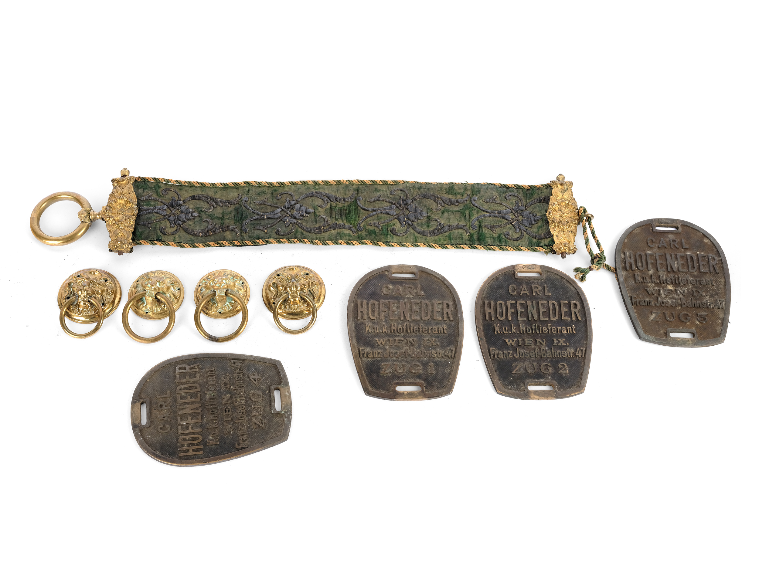 Klingelzug, Metall vergoldet, mit Stickereien