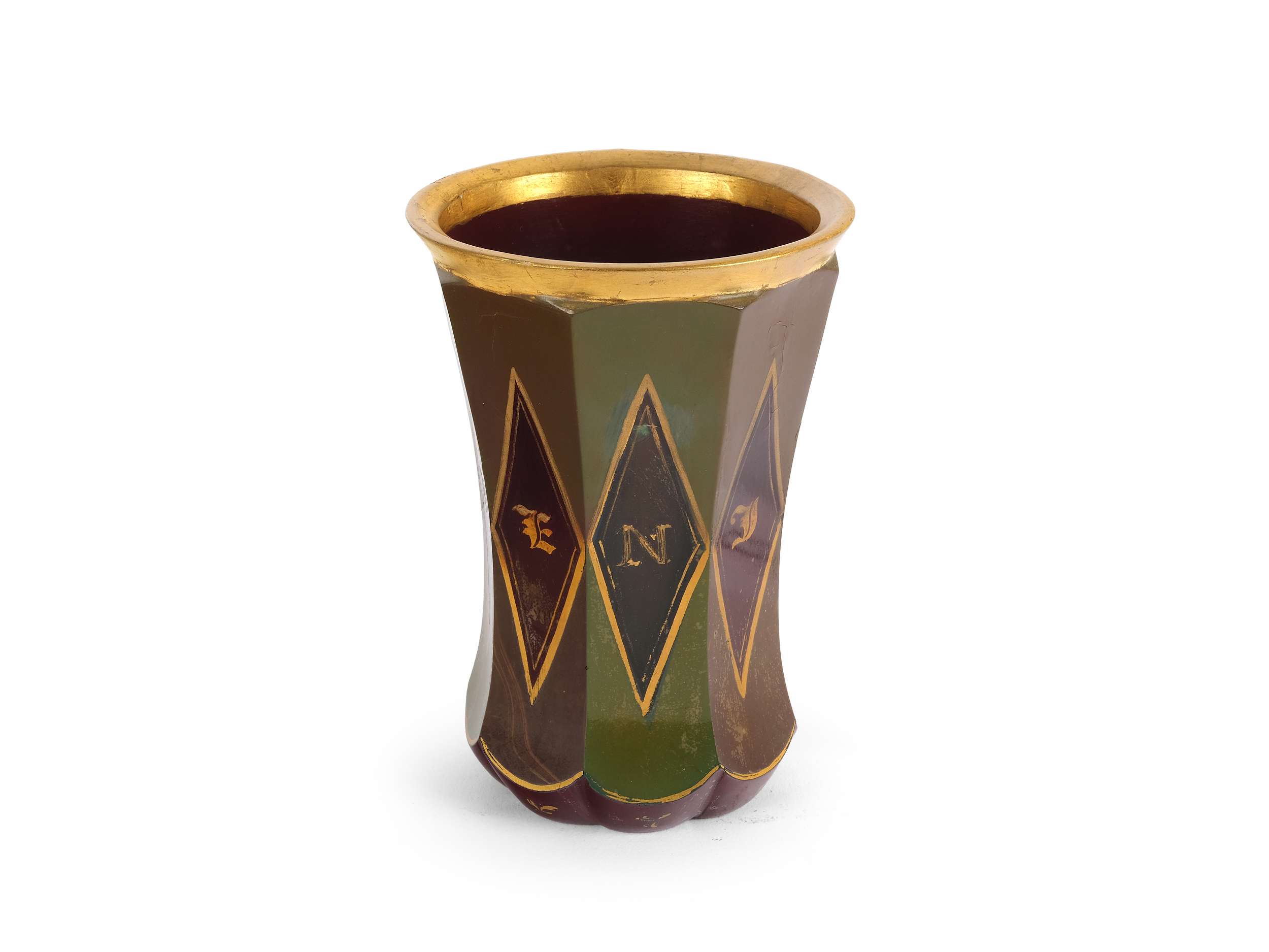 Dunkles Glas bemalt & vergoldet