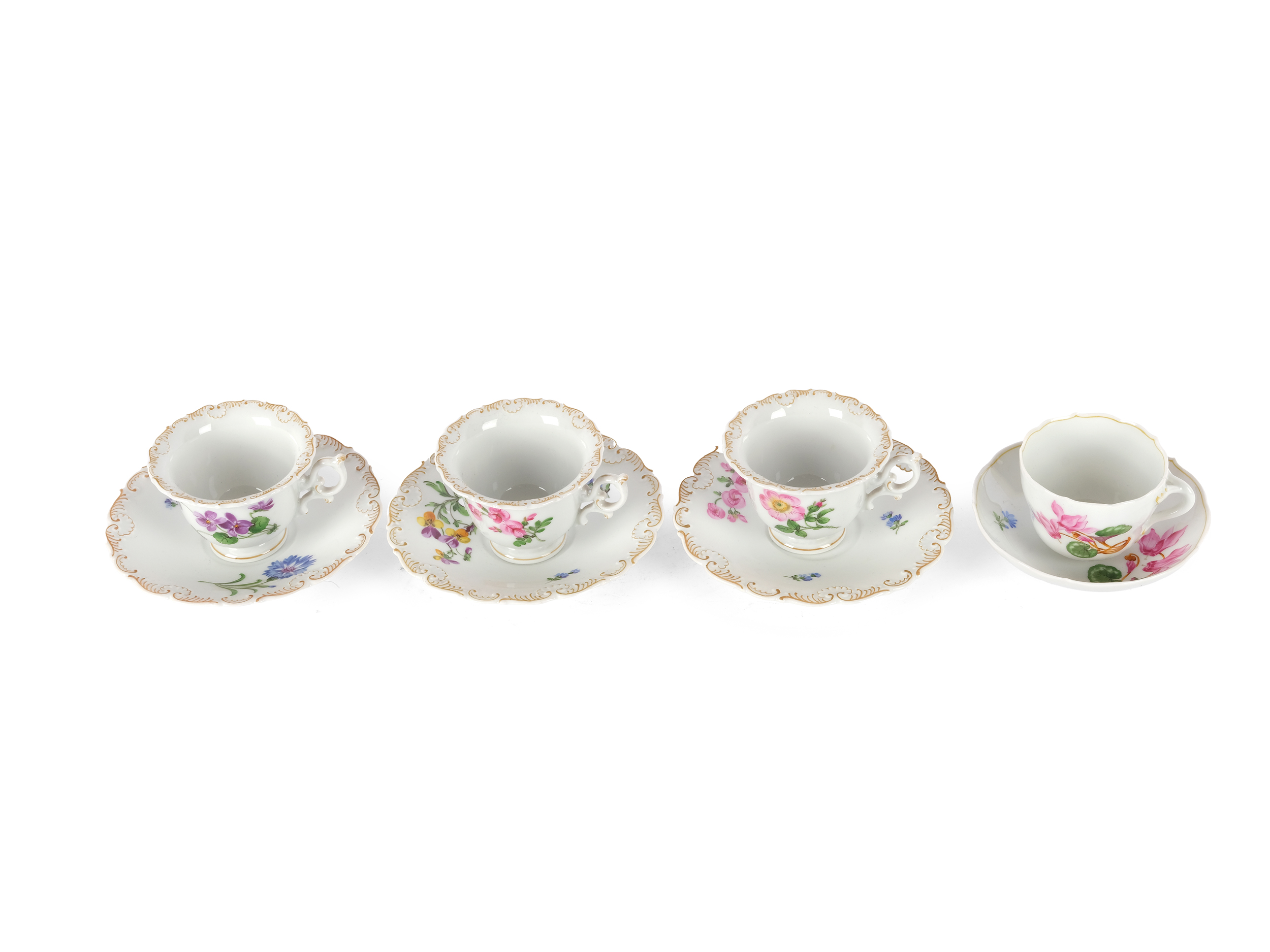 4 Tassen mit Untertassen