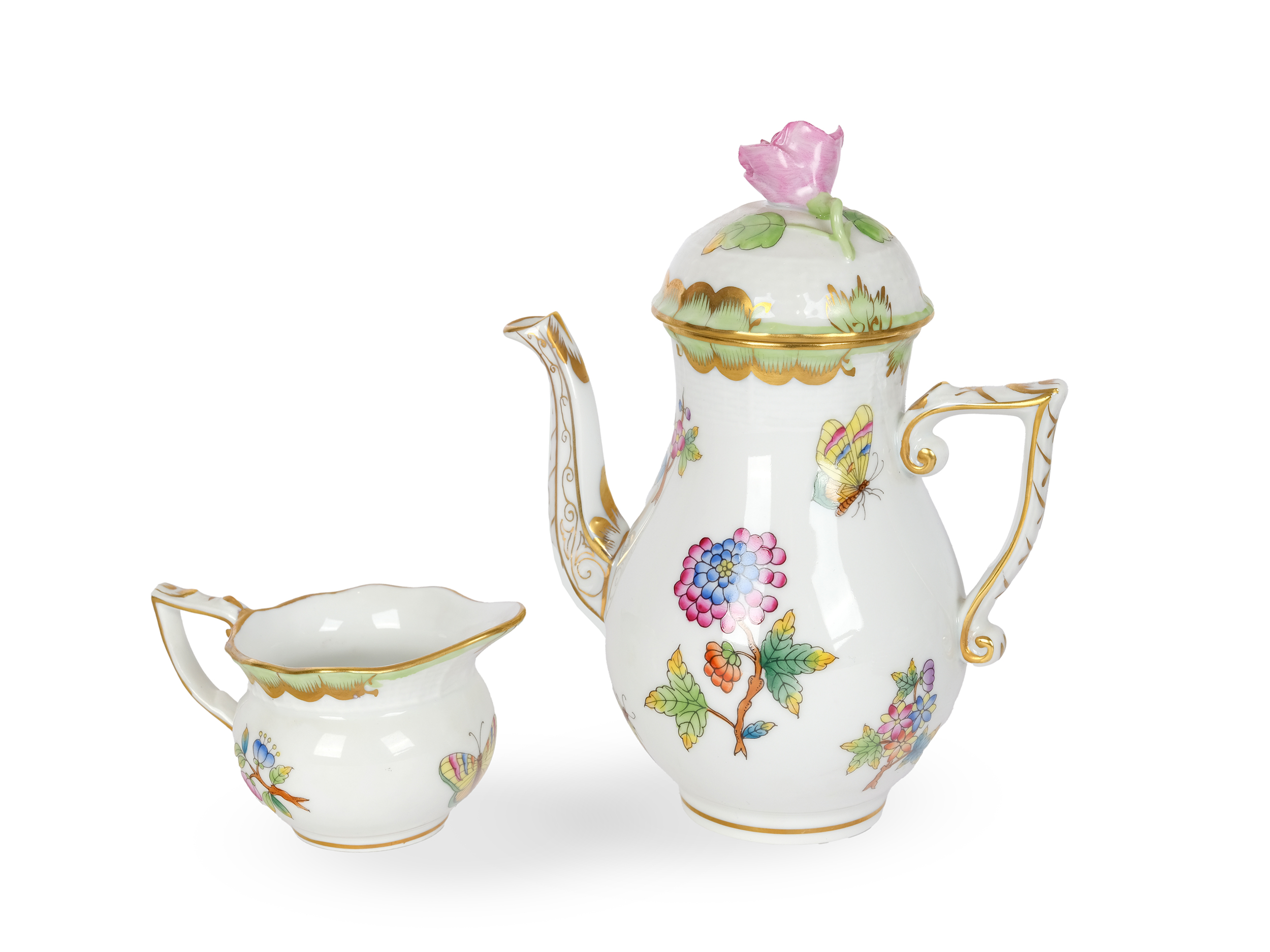 1 Kaffeekanne mit Deckel mit Rosenkauf, Gesamthöhe 15,5 cm, Breite 12,5 cm