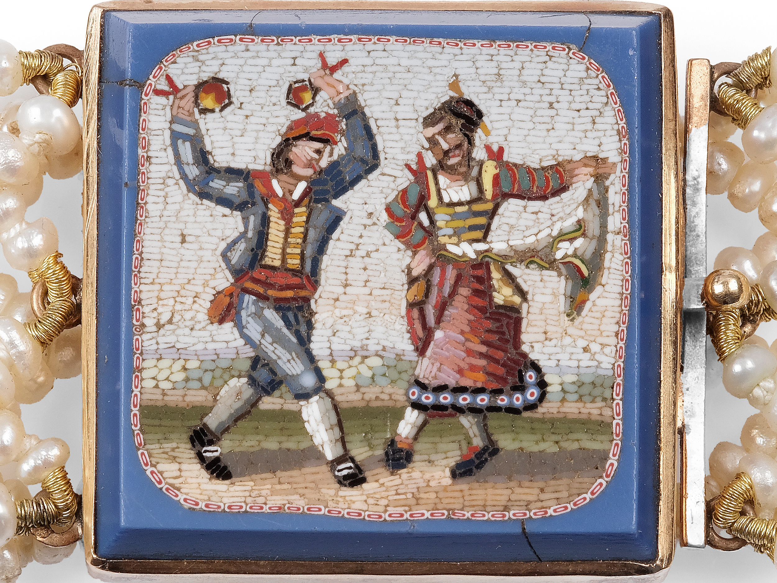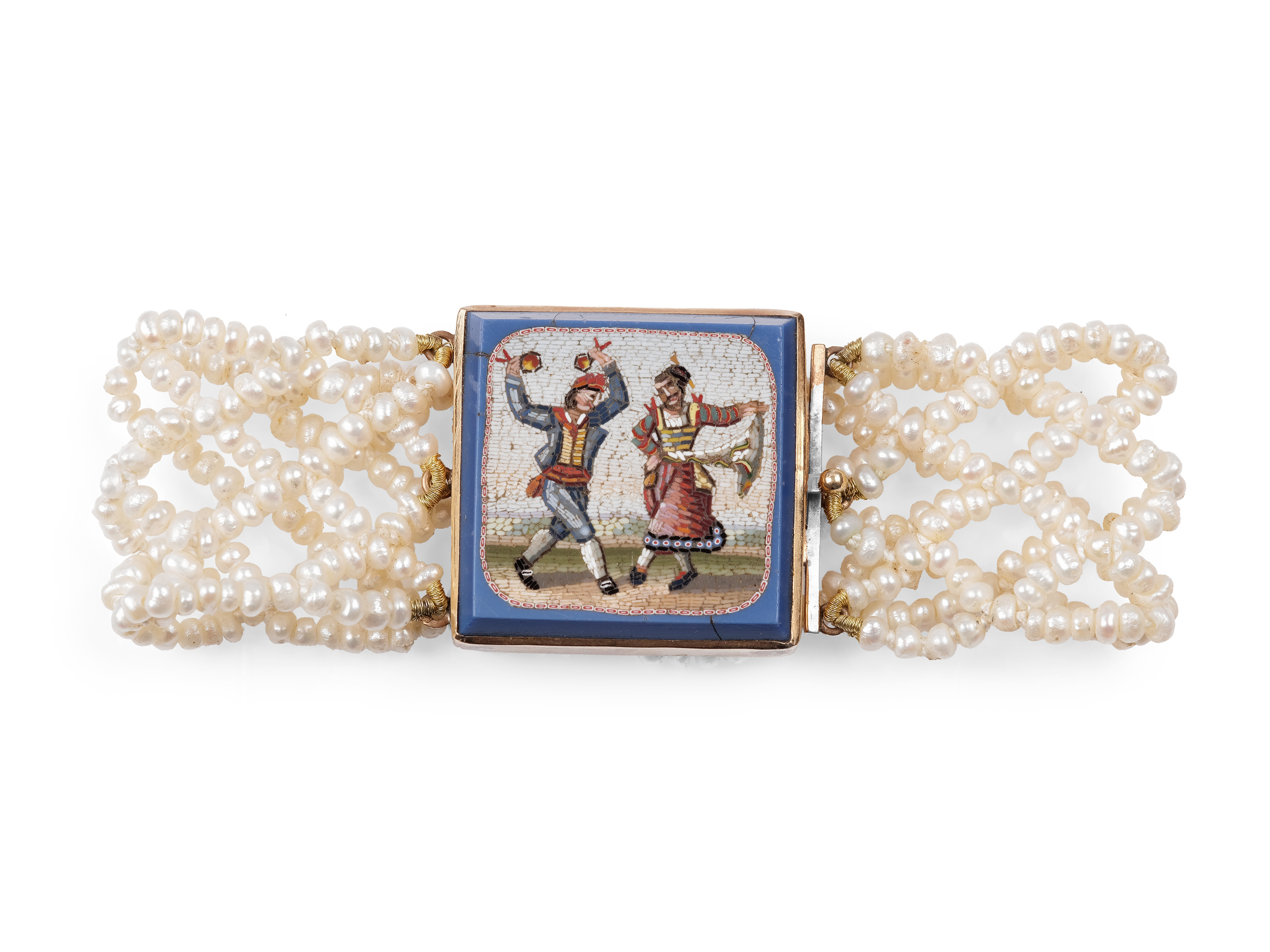 Perlenarmband mit Mikromosaik in Goldfassung