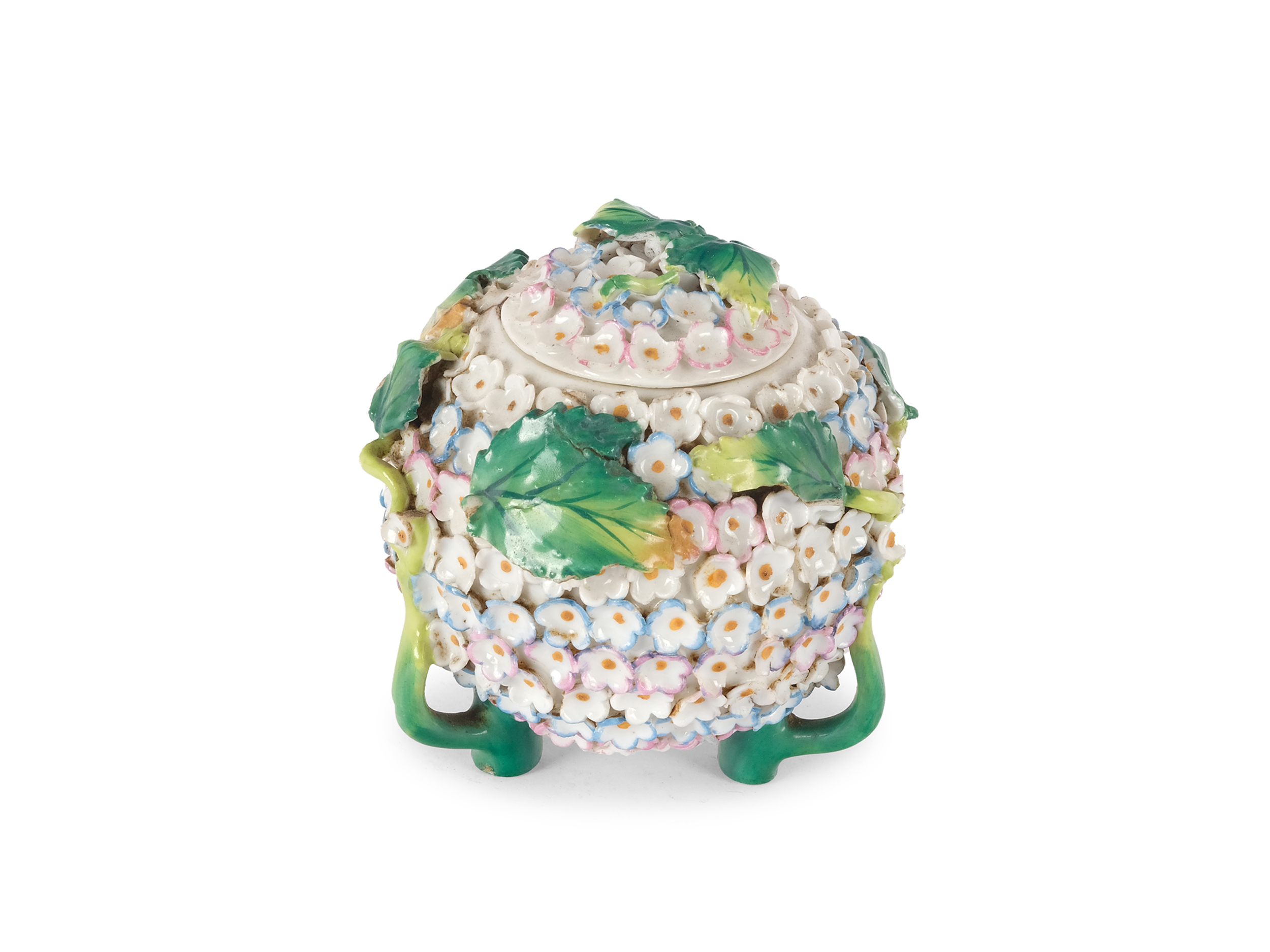 Weißes Porzellan, bunt staffiert