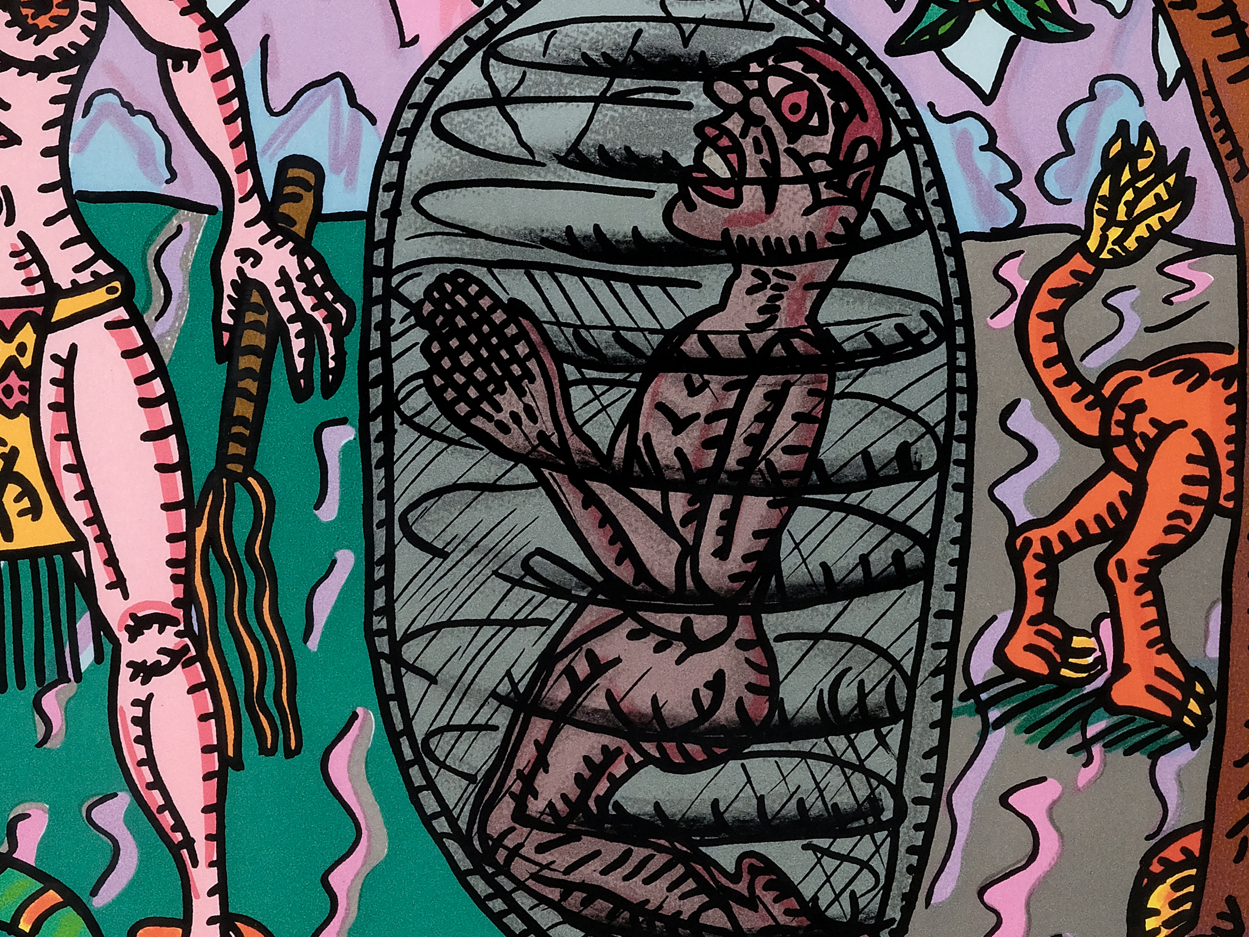 Der Maler Robert Combas war eine treibende Kraft der französischen figuration libre, einer Bewegung, die sich in den 1980er-Jahren formierte und als europäische Schwester des amerikanischen Neo-Expressionismus gilt. Mit Energie und Lust an der Provokation ließ sich Combas von Punk, Graffiti und Comics inspirieren. Seine Malerei war eine klare Absage an die trockene Konzeptkunst und die strengen, akademischen Diskurse der 1970er Jahre. Stattdessen feierte er Spontaneität, Direktheit und ungefilterten Ausdruck.