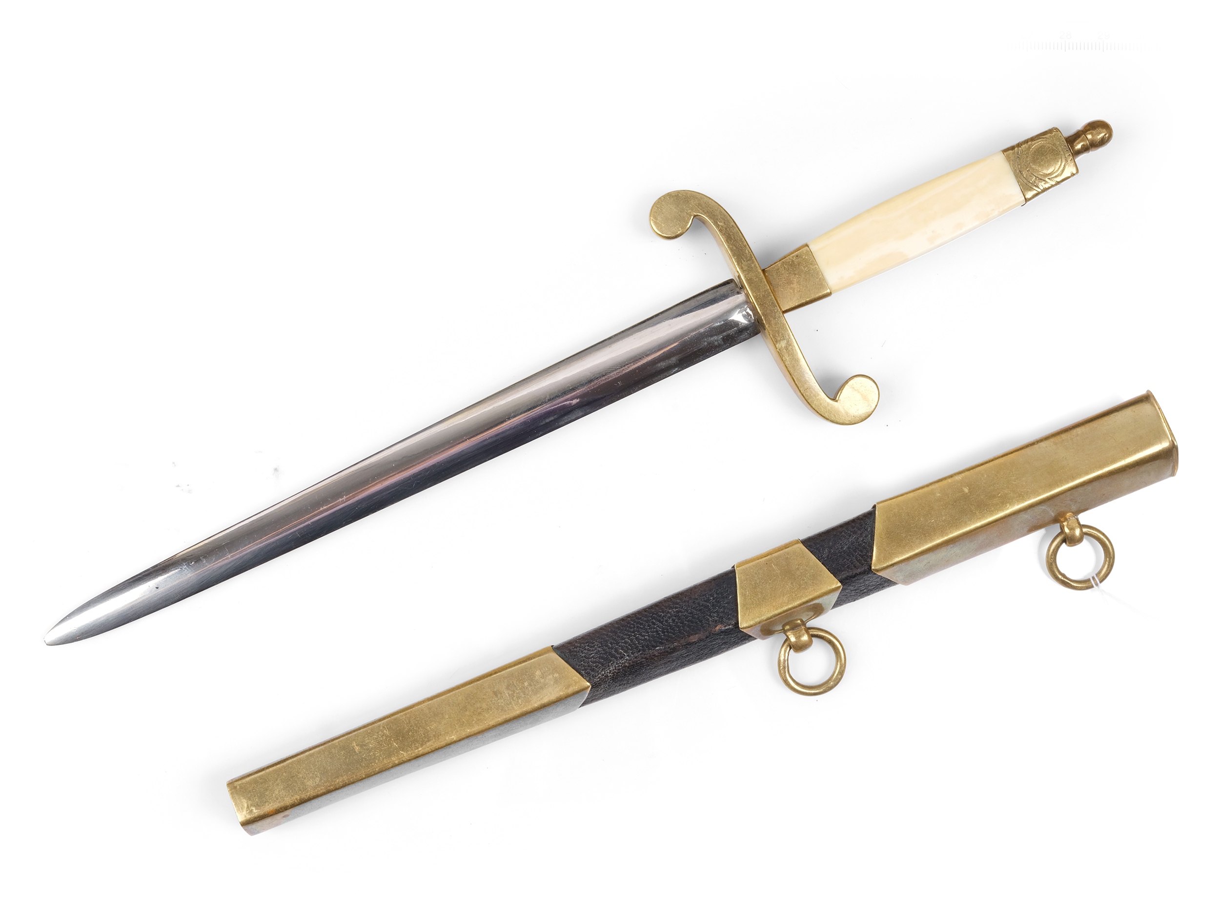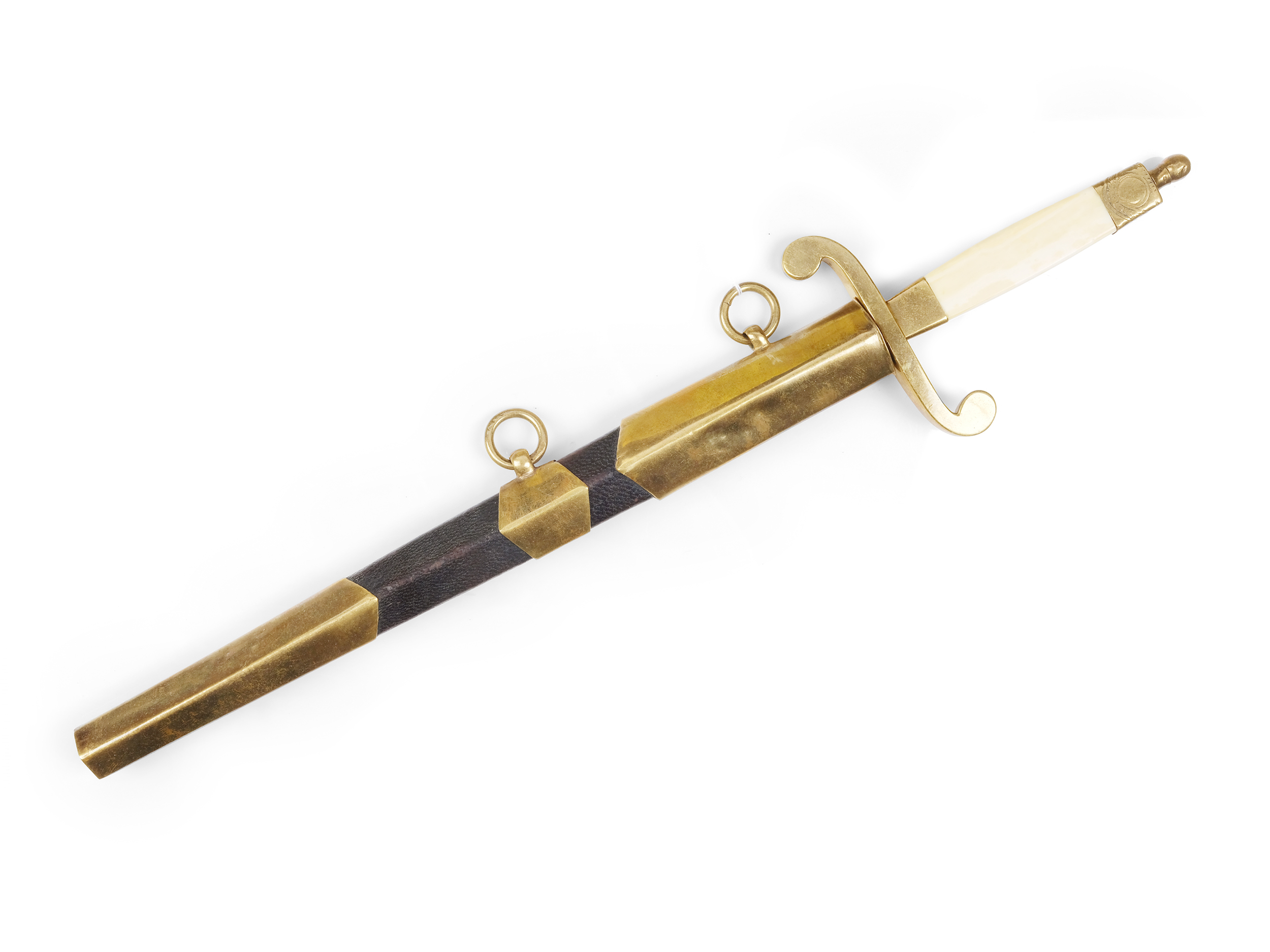 Bronze vergoldet, Klinge Stahl, Leder der Scheide erneuert