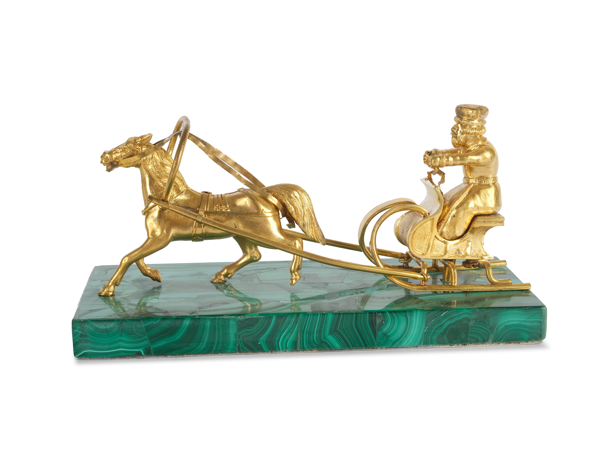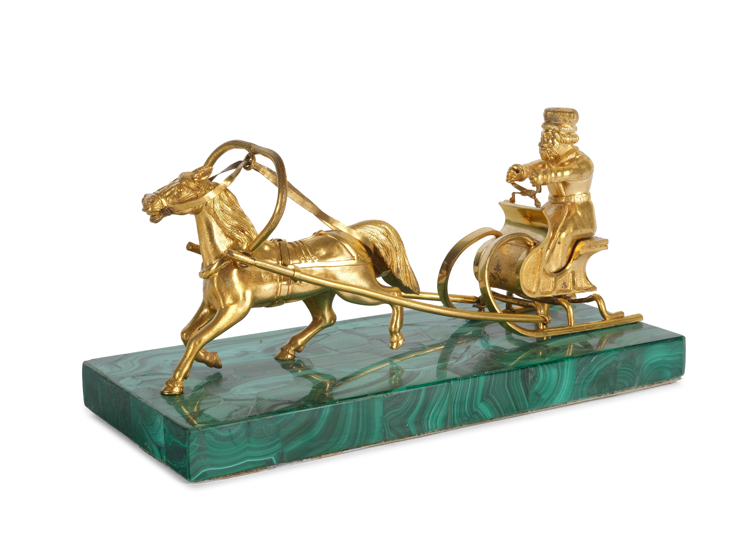 Bronze gegossen ziseliert feuervergoldet auf originalem Malachitsockel
