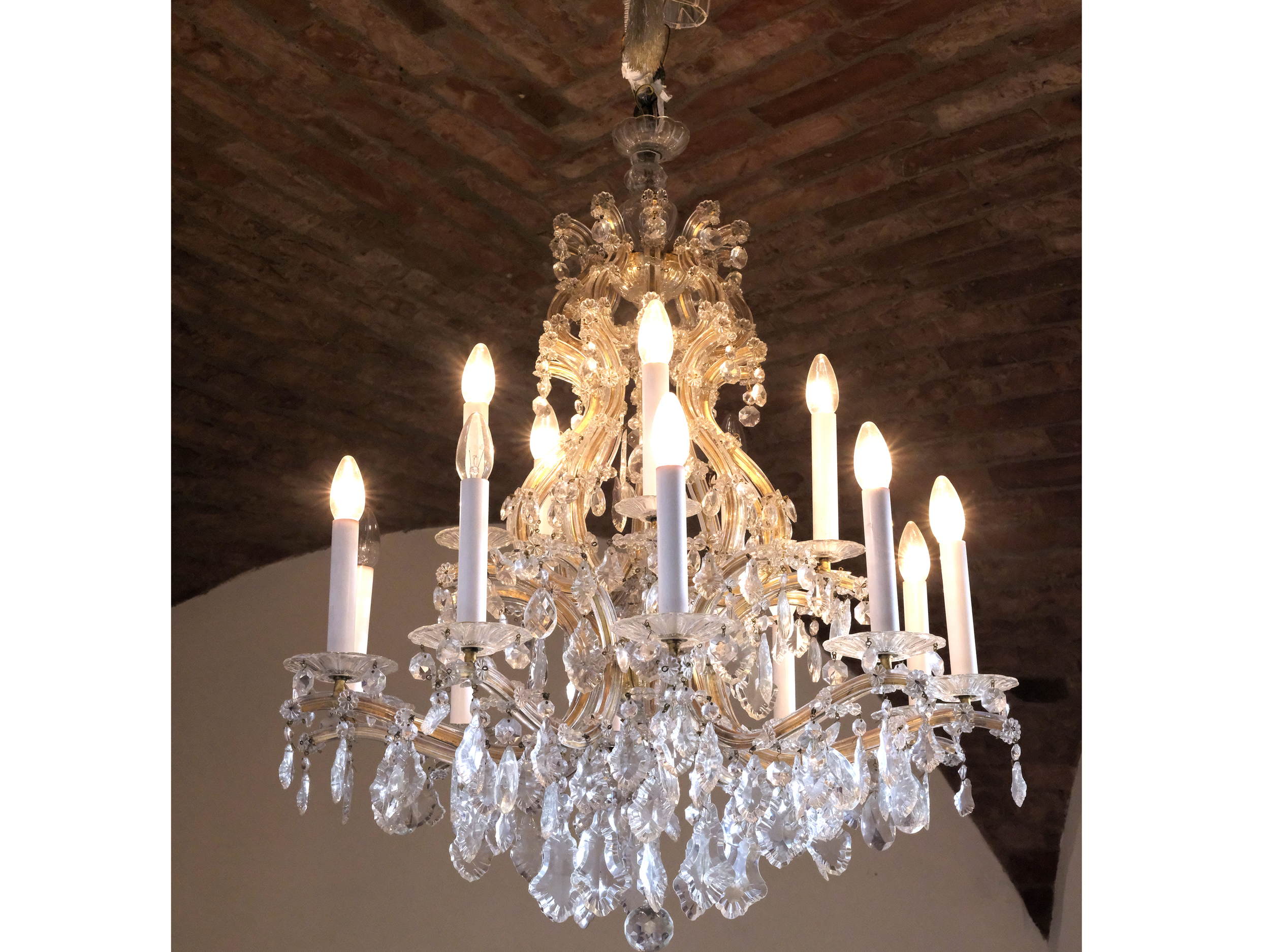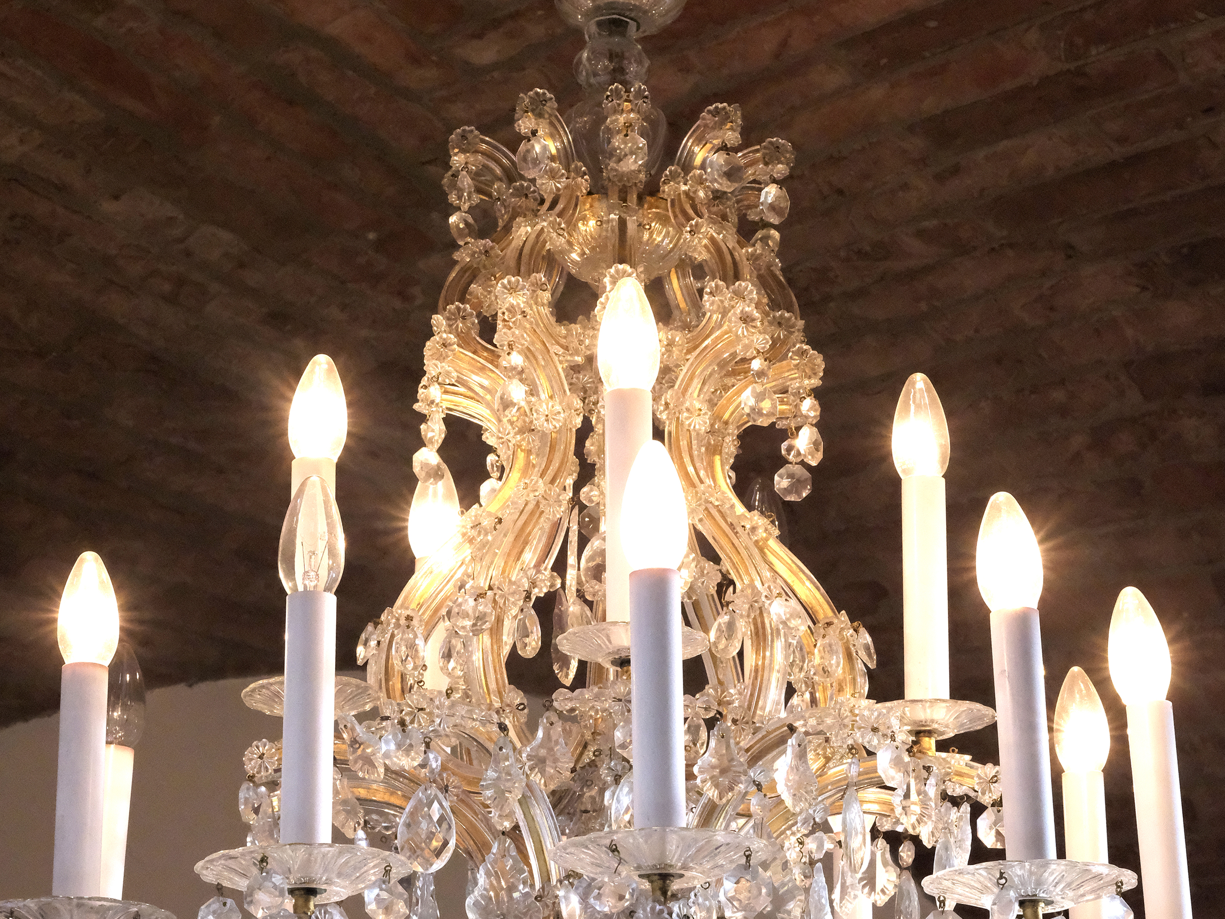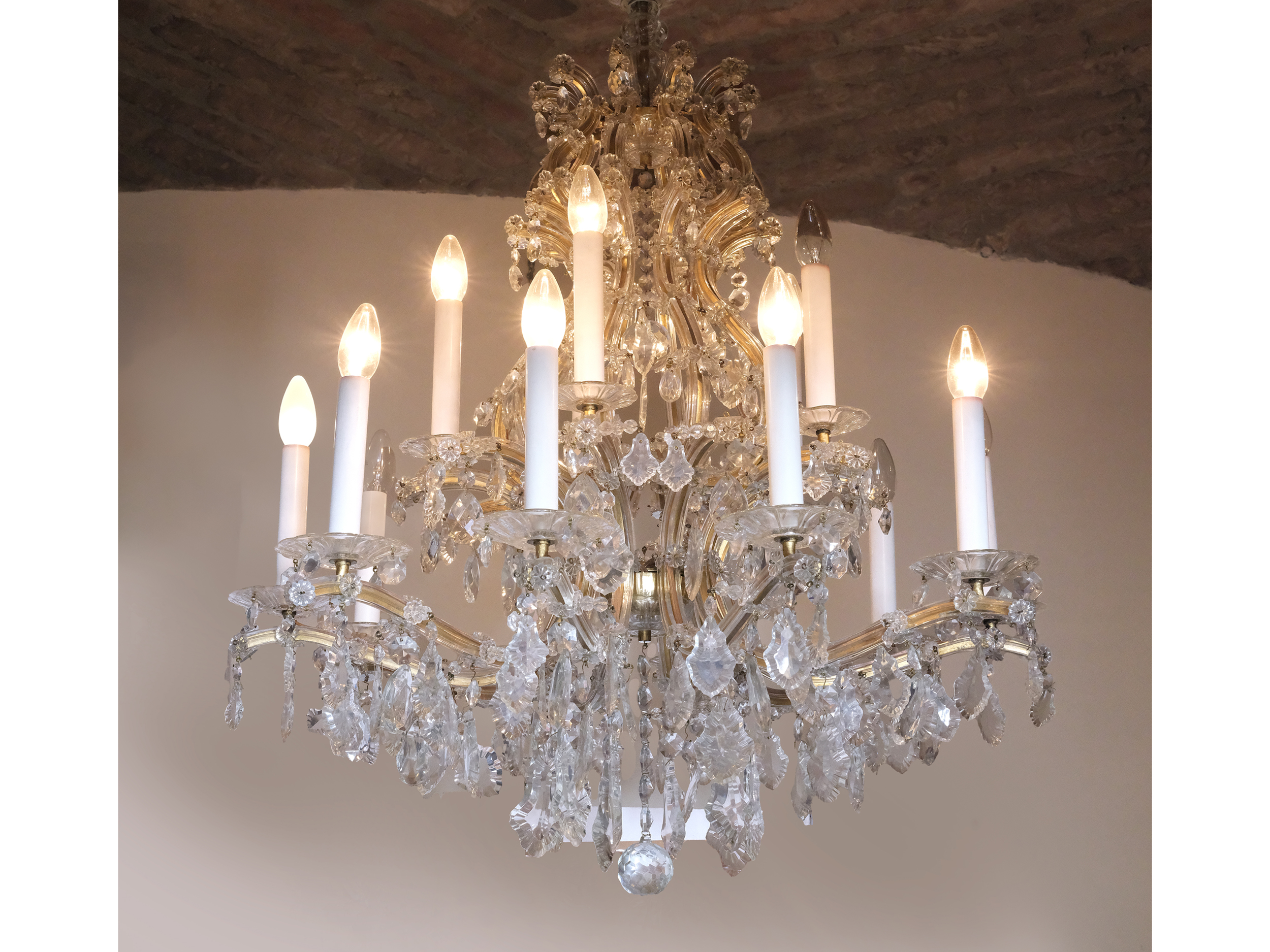 Messinggestell, geschliffener Kristallbehang
