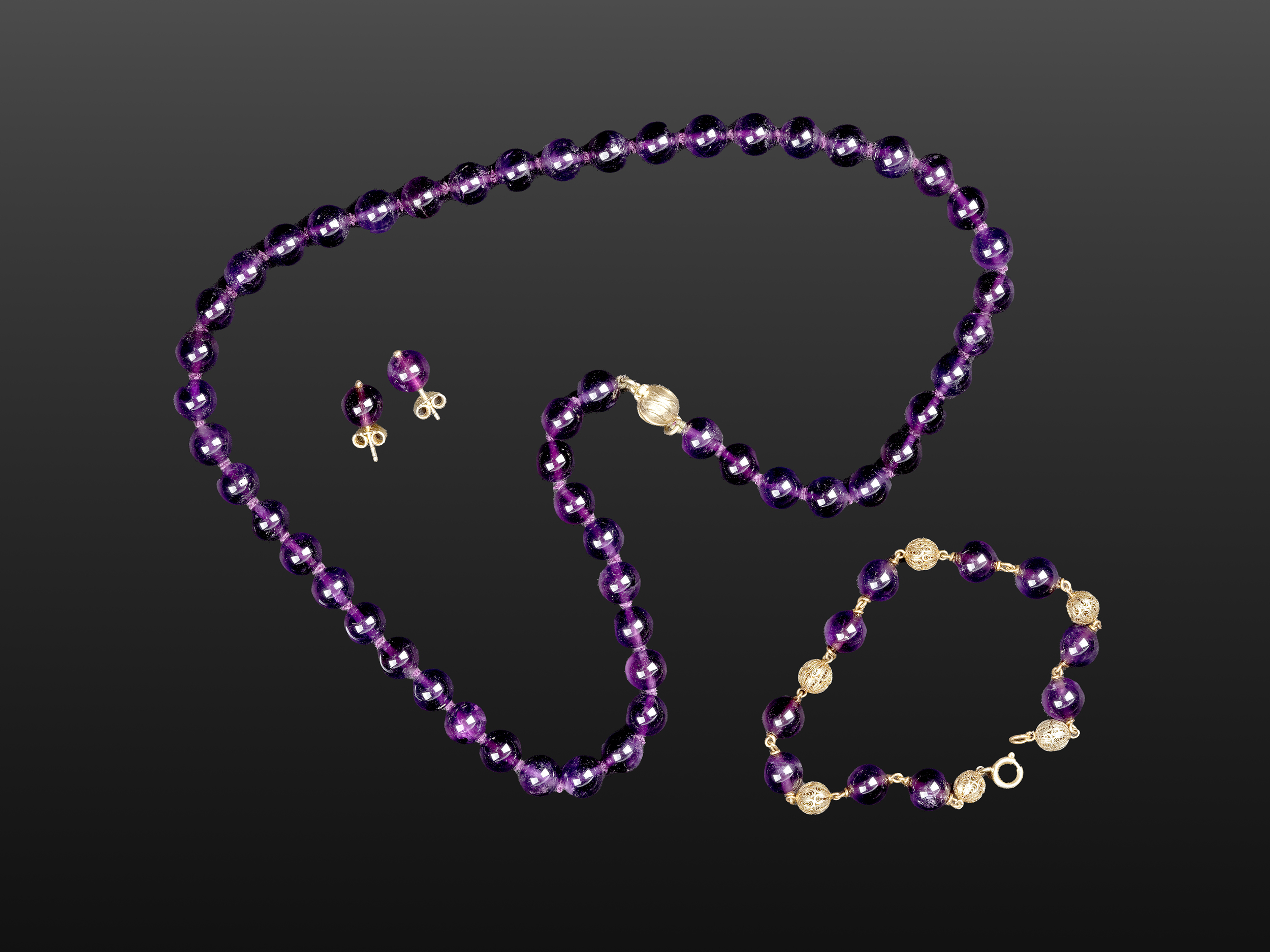 14 kt Gelbgold und Amethystkugeln