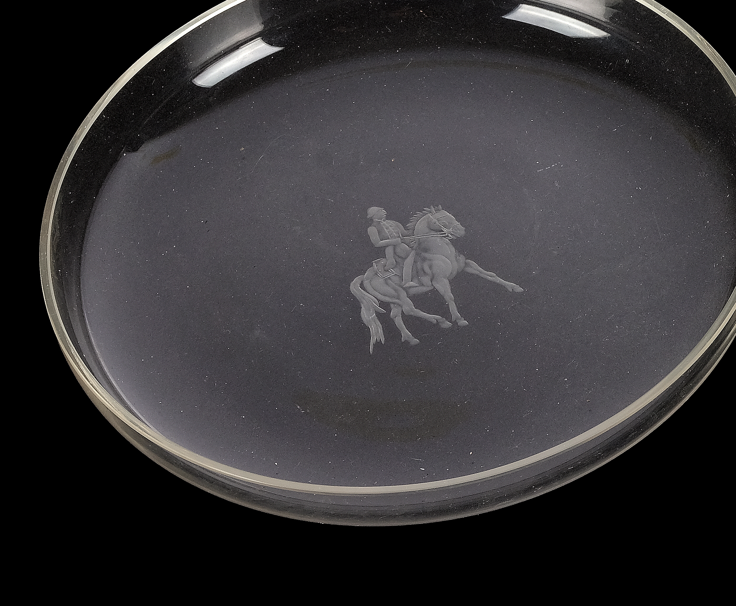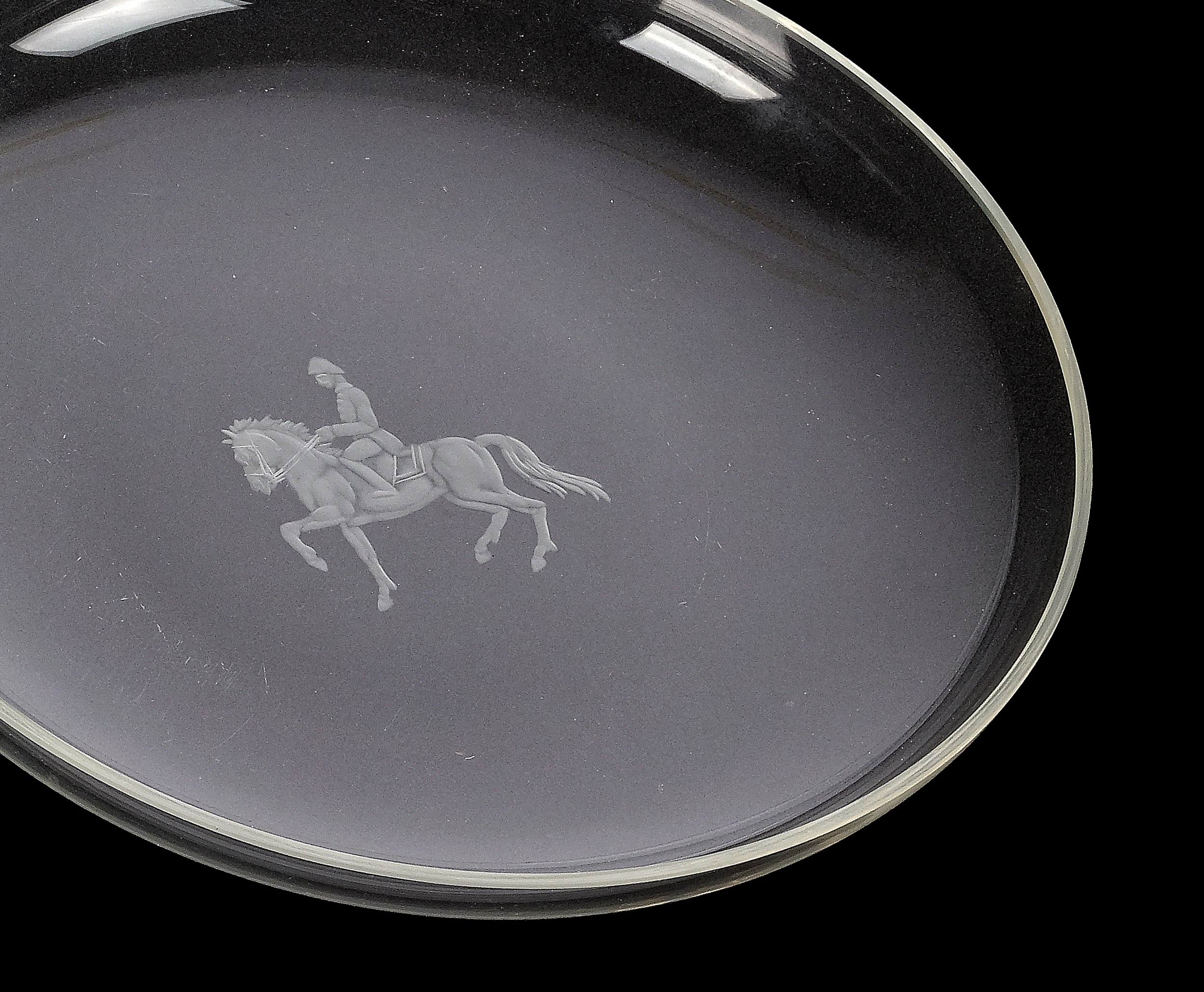 Farbloses Glas graviert mit Dressurreitern der Spanischen Hofreitschule