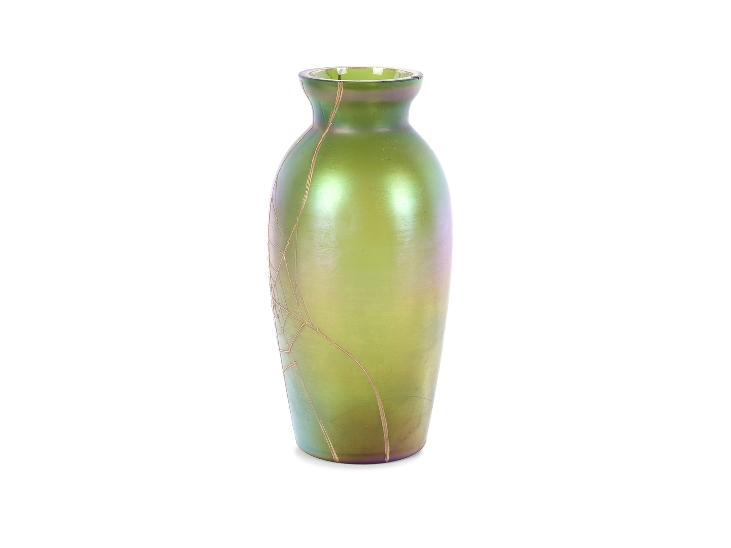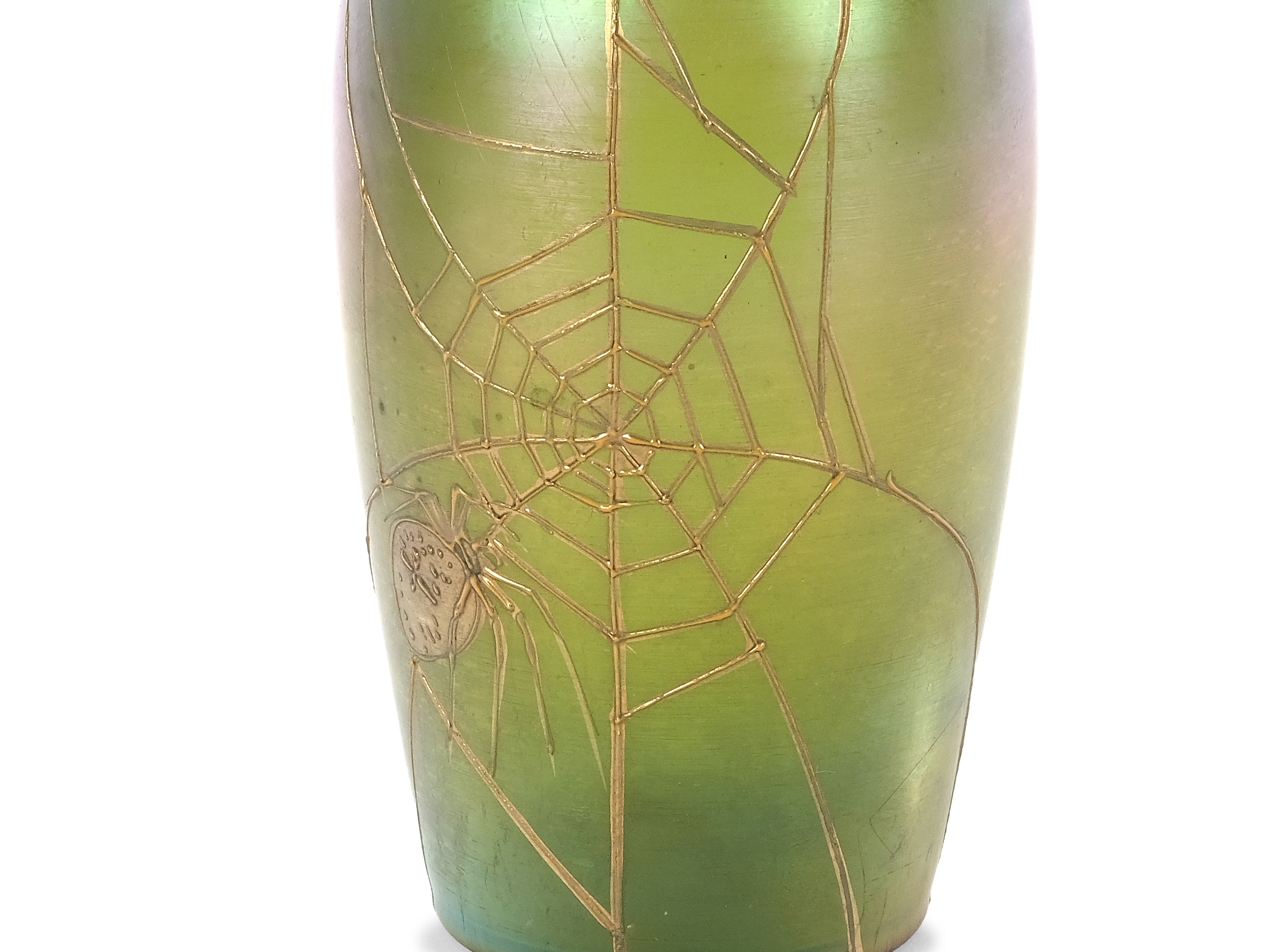 Irisirendes Glas mit Spinnennetz im Goldrelief