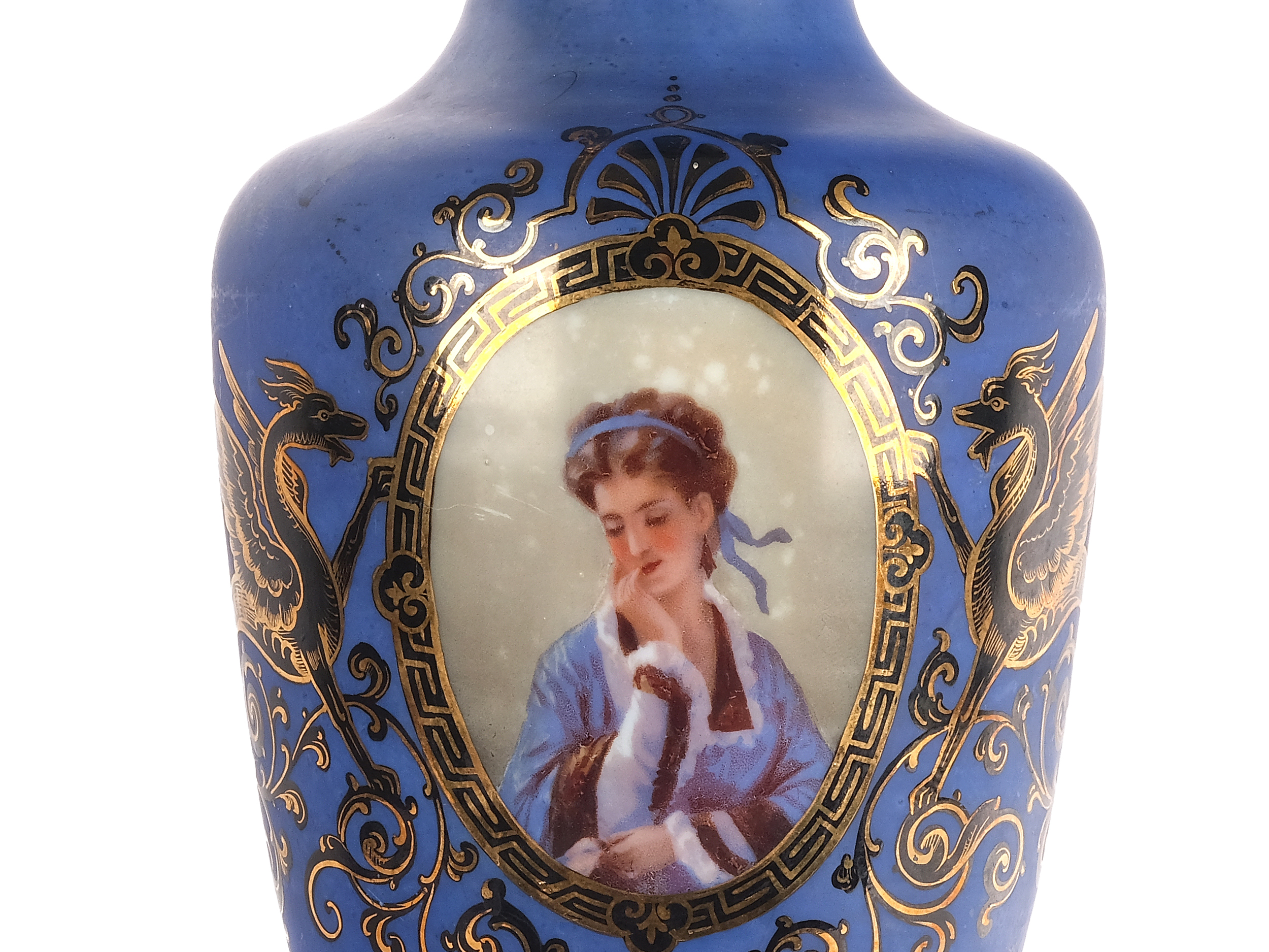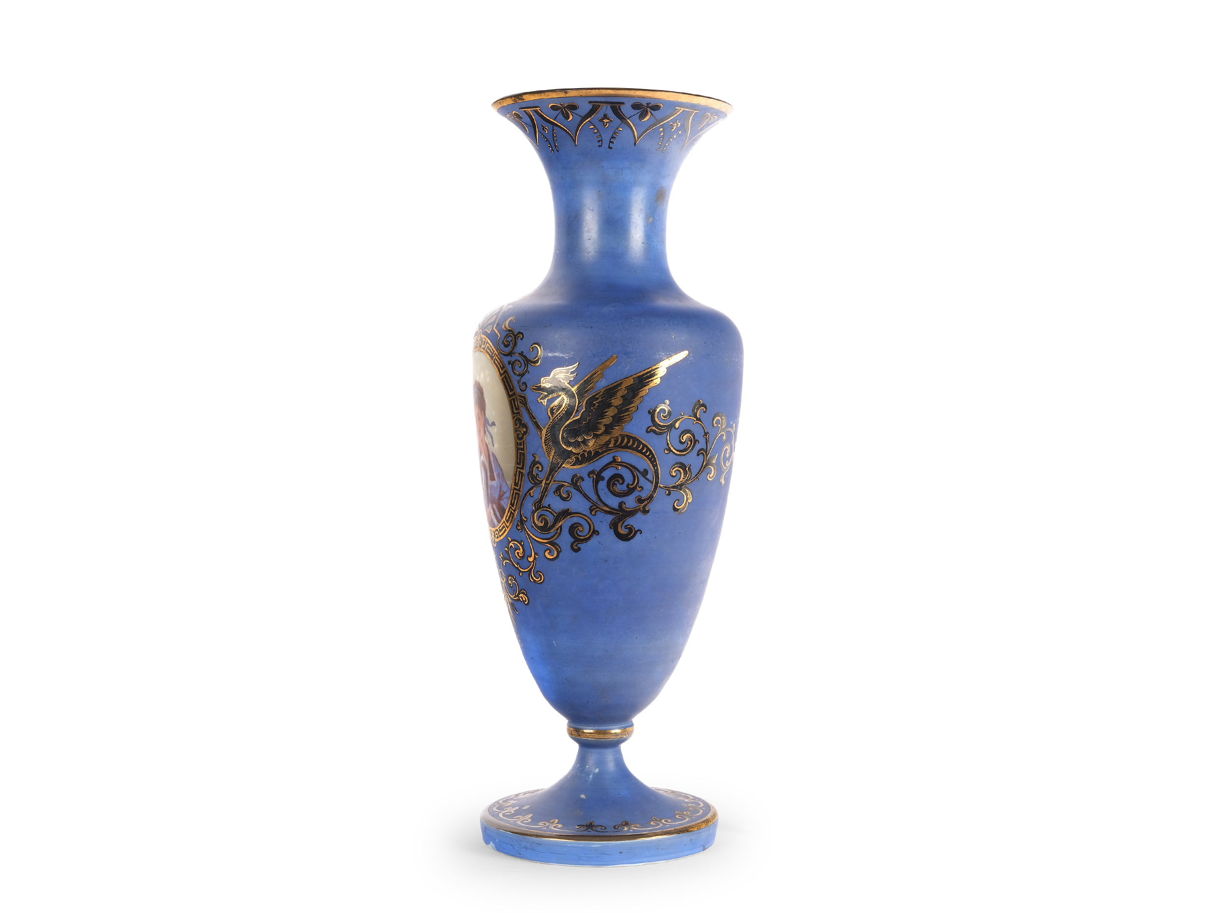 Blaues Glas mit Portraitmedaillon