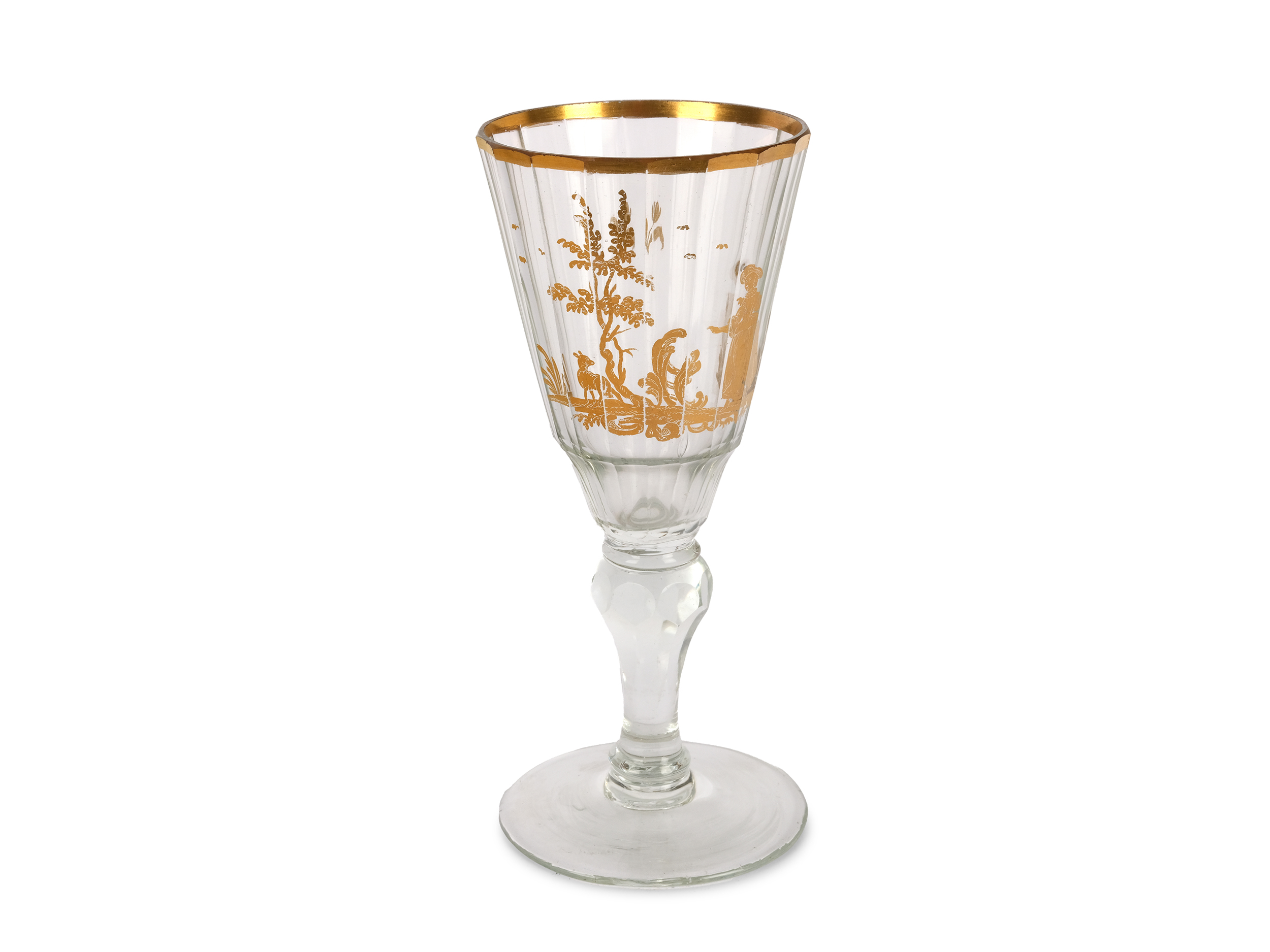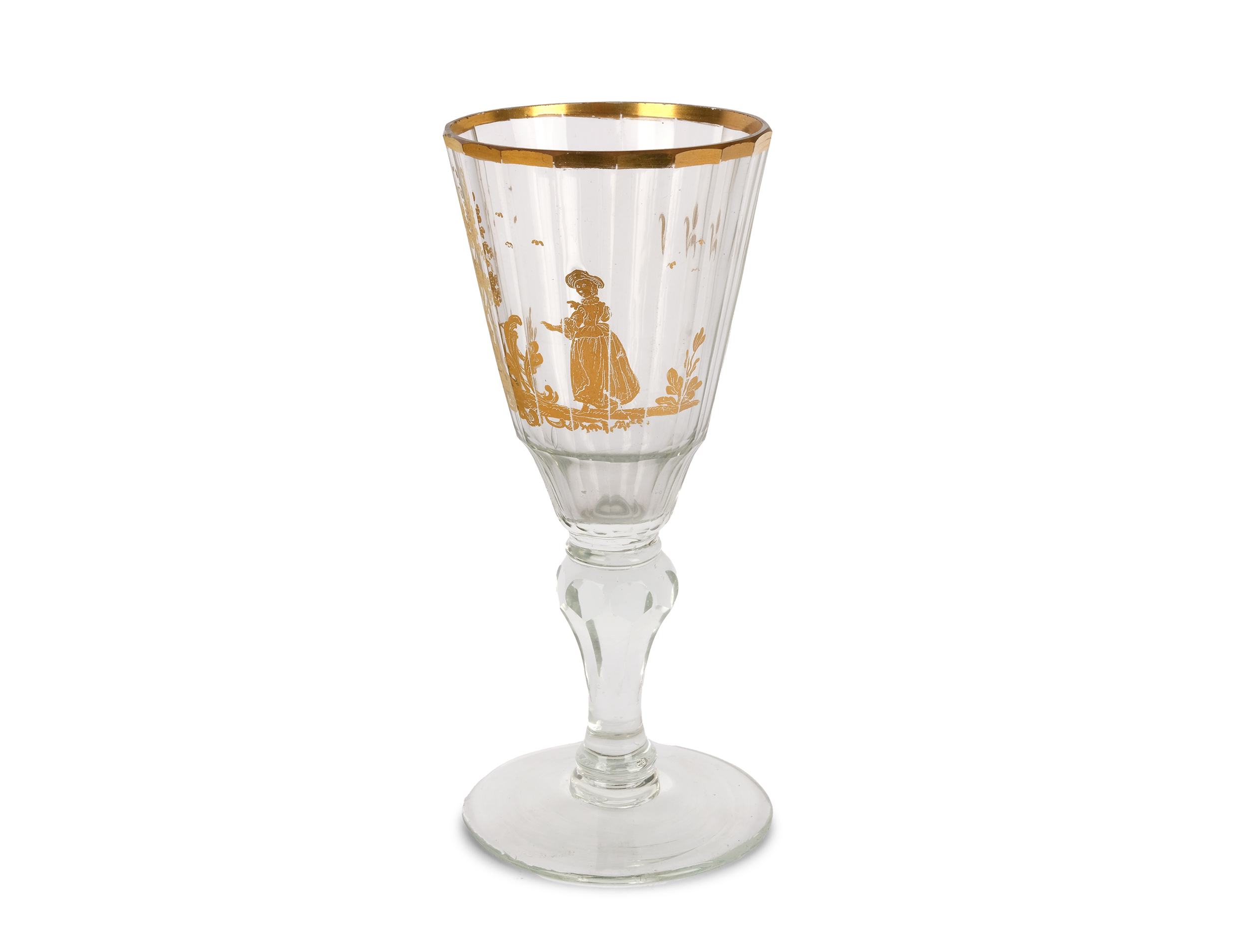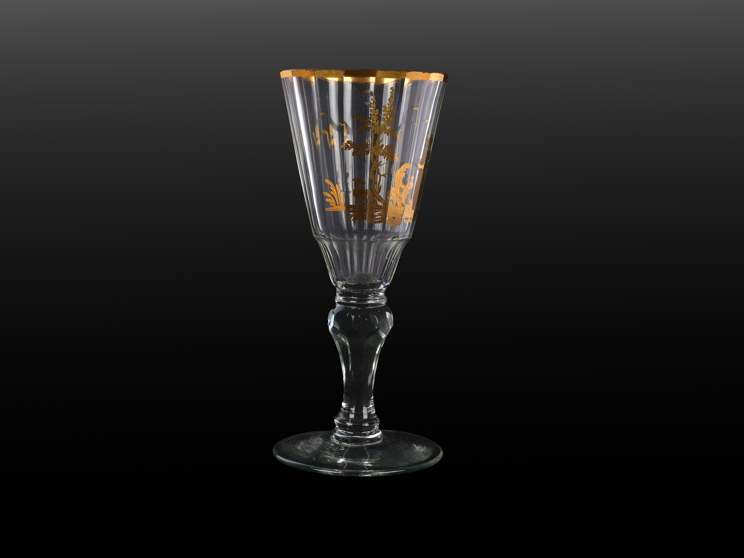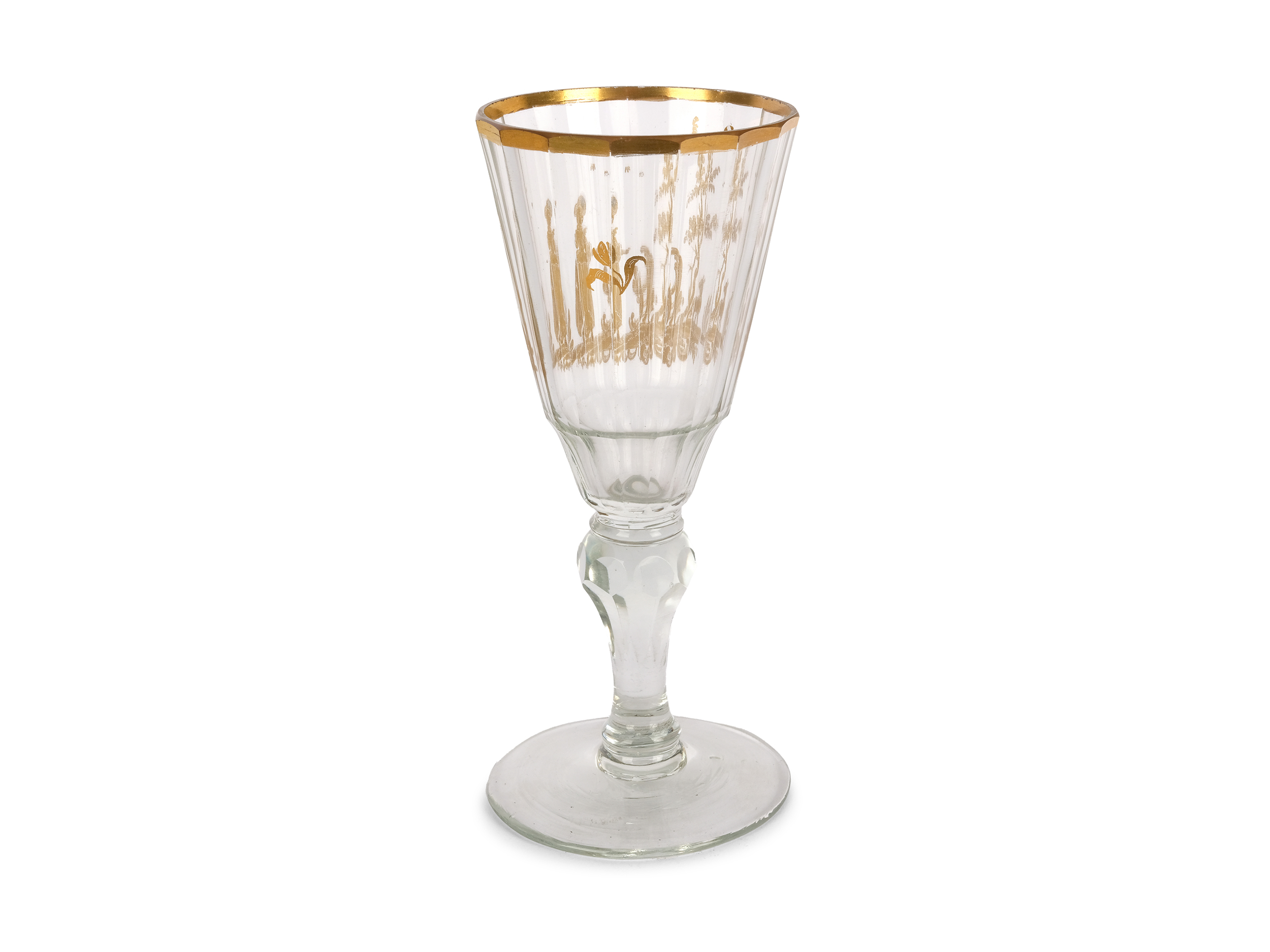Farbloses Glas mit facettierter Kuppa, Goldmalerei leicht berieben