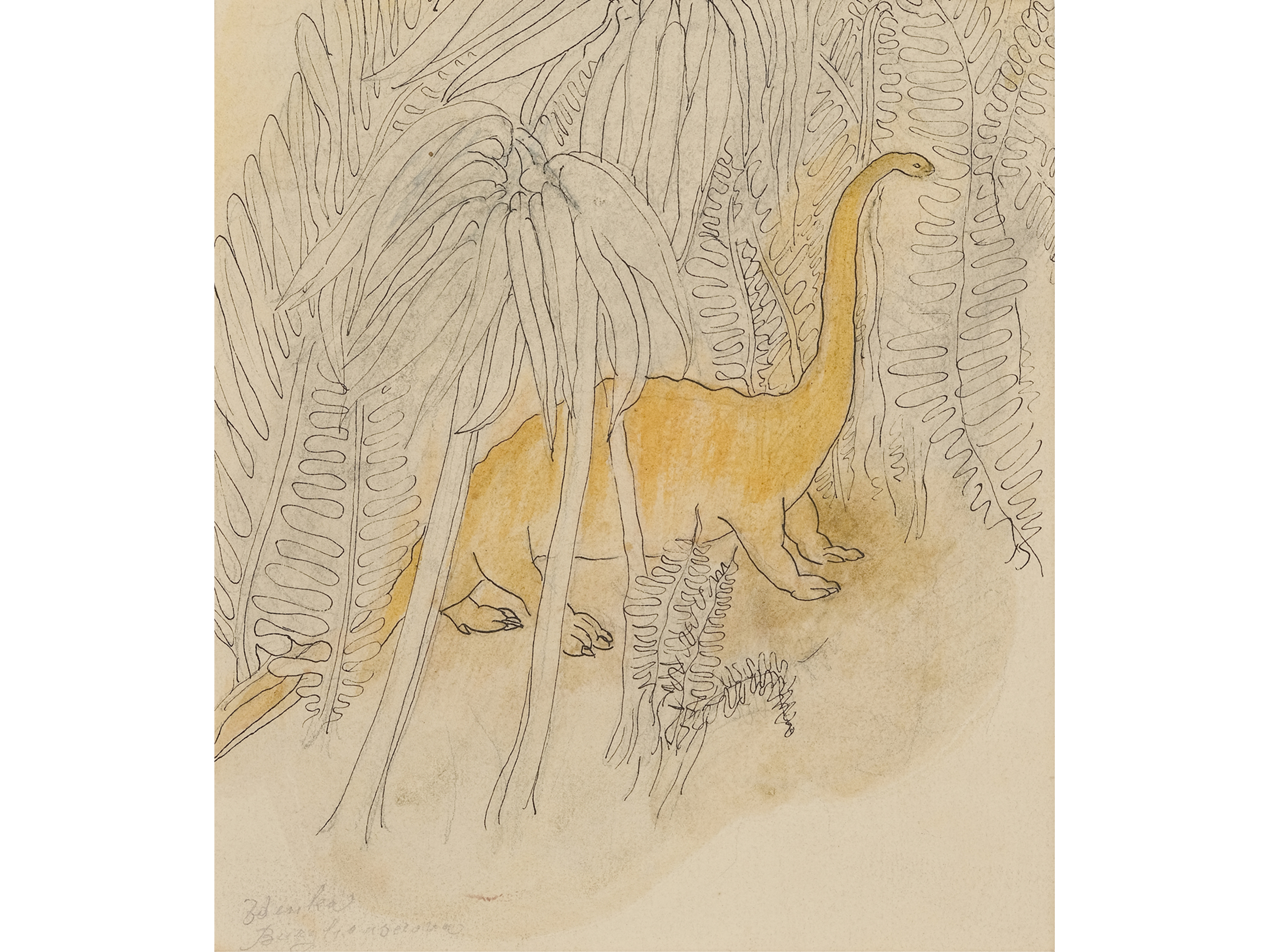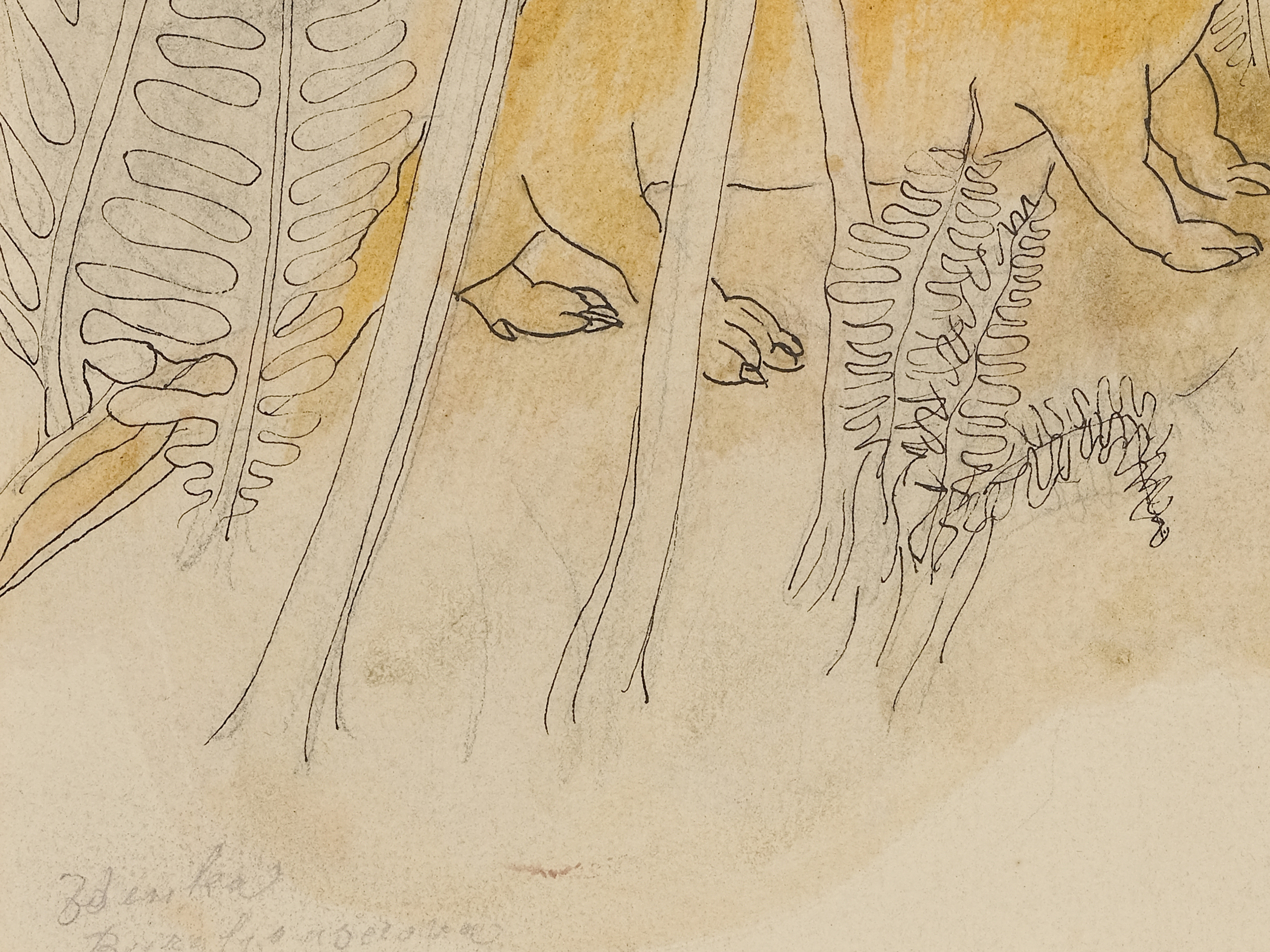 Aquarellierte Federzeichnung auf Papier
